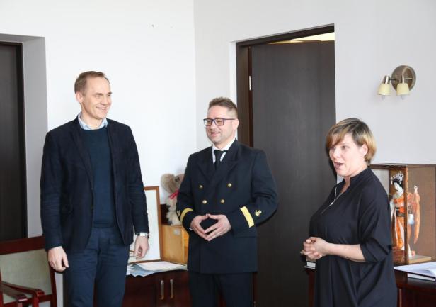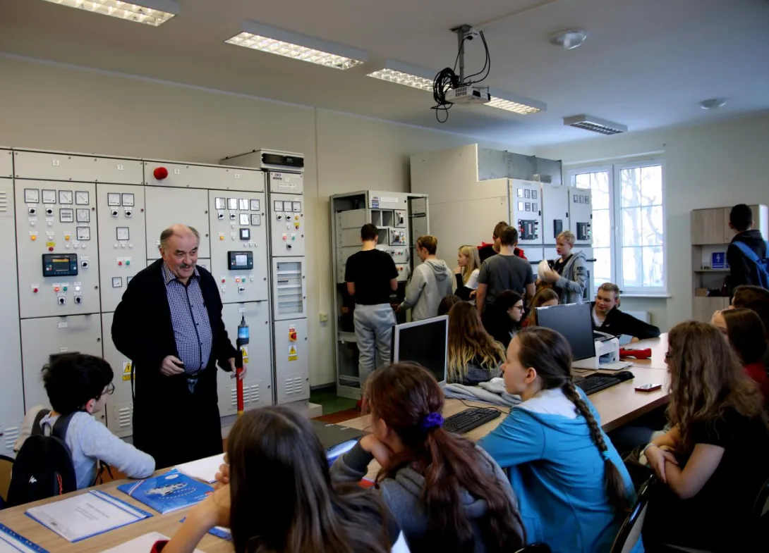 „Młodzi odkrywcy” odwiedzili również symulator elektrowni okrętowej w Katedrze Elektroenergetyki Okrętowej na Wydziale Elektrycznym. Inżynier Zenon Troka zapoznał ich z zasadami działania elektrowni okrętowej i pokazywał im silniki elektryczne sprzężone z prądnicami, które symulują pracę diesla. Punktem kulminacyjnym była wizyta w Sali Tradycji, gdzie uczniowie – dzięki prezentacji p. kustosz mgr Ewy Otremby - zapoznali się z historią oraz aktualnymi informacjami dotyczącymi funkcjonowania Uczelni. Żywo reagowali na relacje dotyczące Rejsu Niepodległości Daru Młodzieży, a część z nich wyraziła nawet zainteresowanie studiami w naszej Alma Mater w przyszłości.