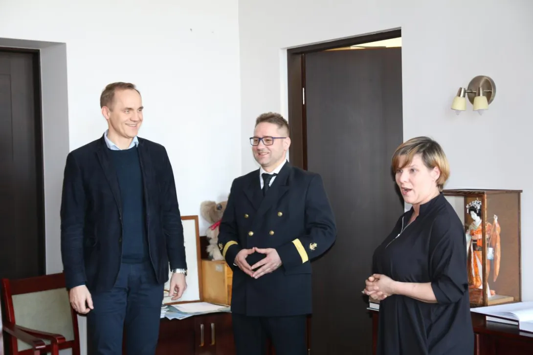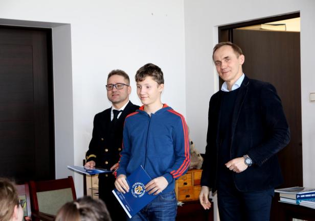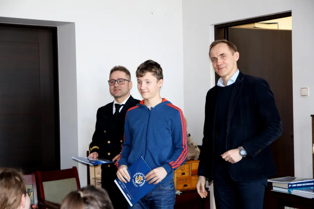 Podczas uroczystego podsumowania tej części projektu, w obecności p. Magdaleny Winiarskiej - specjalisty ds. projektów unijnych z Działu Nauki i Współpracy UMG, dr hab. Maciej Matczak, prof. UMG - Prodziekan WPiT- wręczył beneficjentom certyfikaty uczestnictwa w warsztatach oraz im i ich opiekunom materiały promocyjne naszej Uczelni.