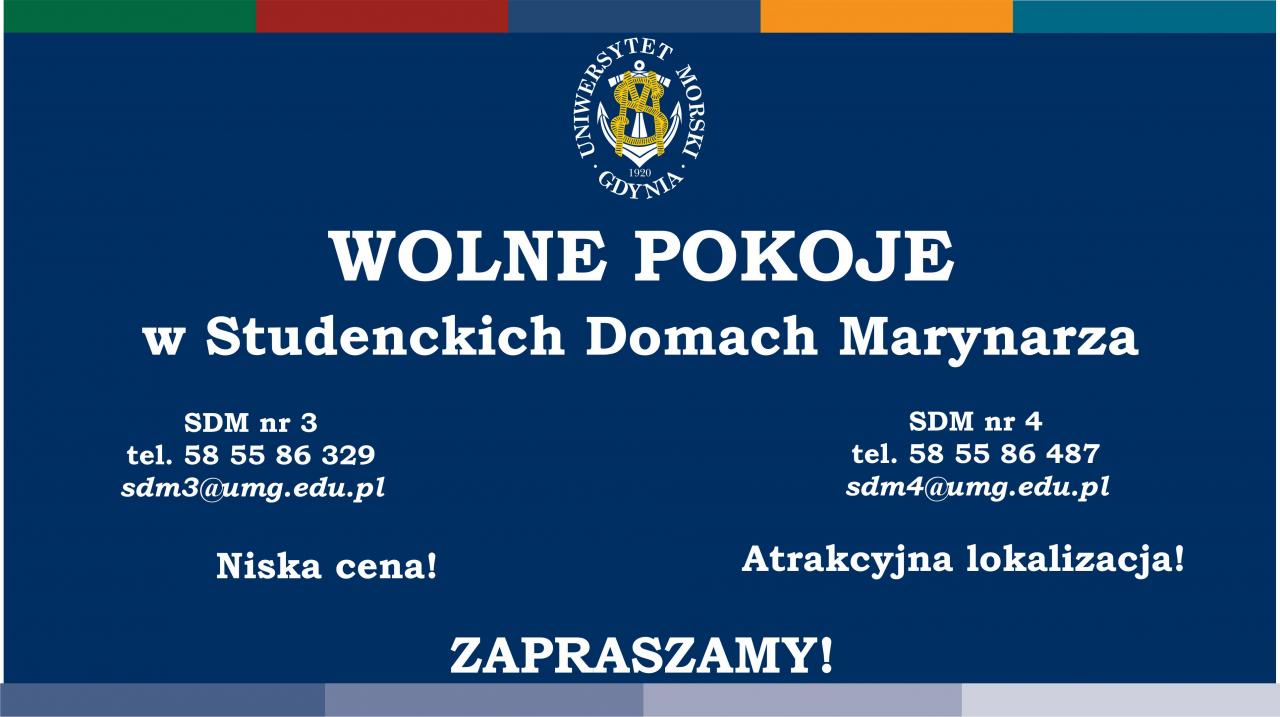 W Studenckich Domach Uniwersytetu Morskiego w Gdyni są jeszcze wolne miejsca do wynajęcia.