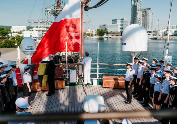 Ta część uroczystości zakończona została Hymnem do Bałtyku i odprowadzeniem sztandaru.