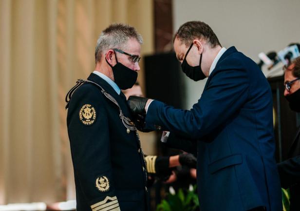 Następnie Pan Minister Adam Kwiatkowski odczytał list od Prezydenta RP i wręczone zostały odznaczenia państwowe, medale Centrum Operacji Morskich - Dowództwa Komponentu Morskiego, odznaczenia Rektora-Komendanta Akademii Sztuki Wojennej gen. Ryszarda Parafianowicza oraz medale wojewody kujawsko-pomorskiego.