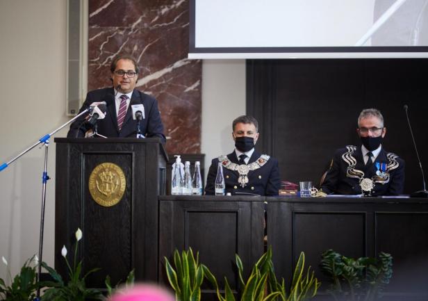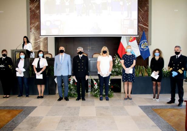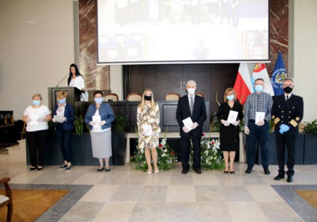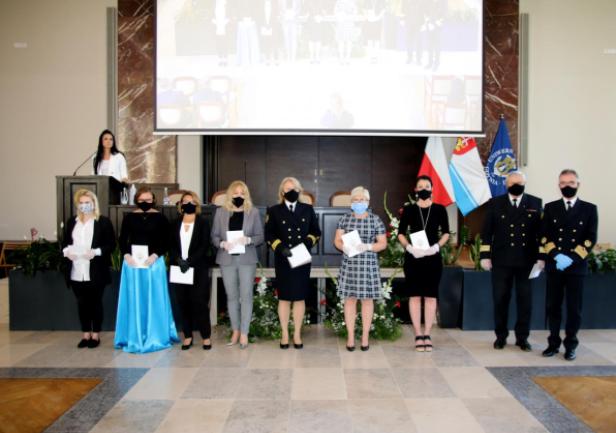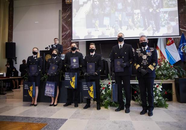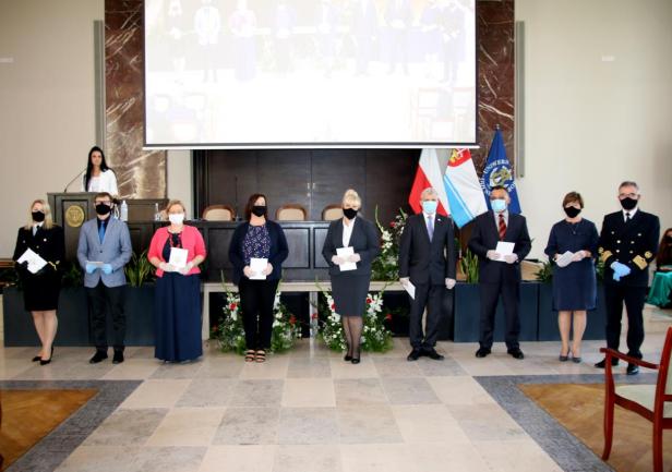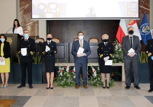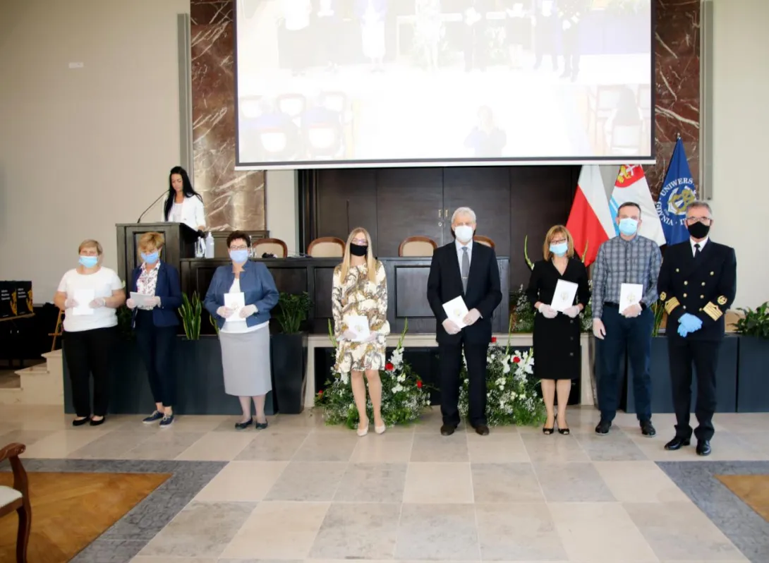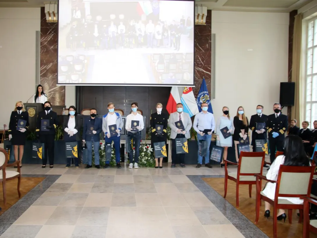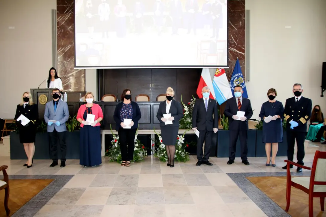 Kolejnym punktem uroczystości było wręczenie przyznanych przez JM Rektora prof. Janusza Zarębskiego nagród. Otrzymali je pracownicy Uniwersytetu Morskiego za ponadprzeciętne osiągnięcia w pracy w roku 2019, członkowie Parlamentu Studentów za działalność i pracę społeczną na rzecz środowiska akademickiego, a także wręczone zostały odznaczenia „Zasłużony dla Szkolnictwa Morskiego” poprzednim Rektorom naszej Uczelni, którzy przyczynili się do rozwoju Uniwersytetu i szkolnictwa morskiego.