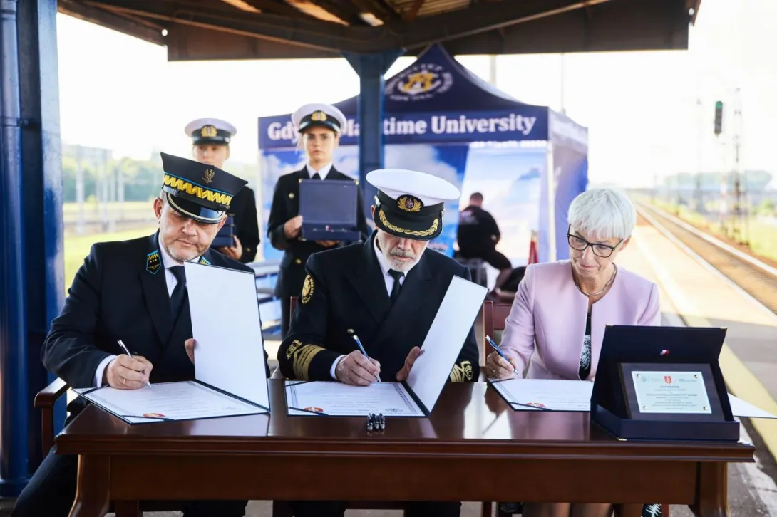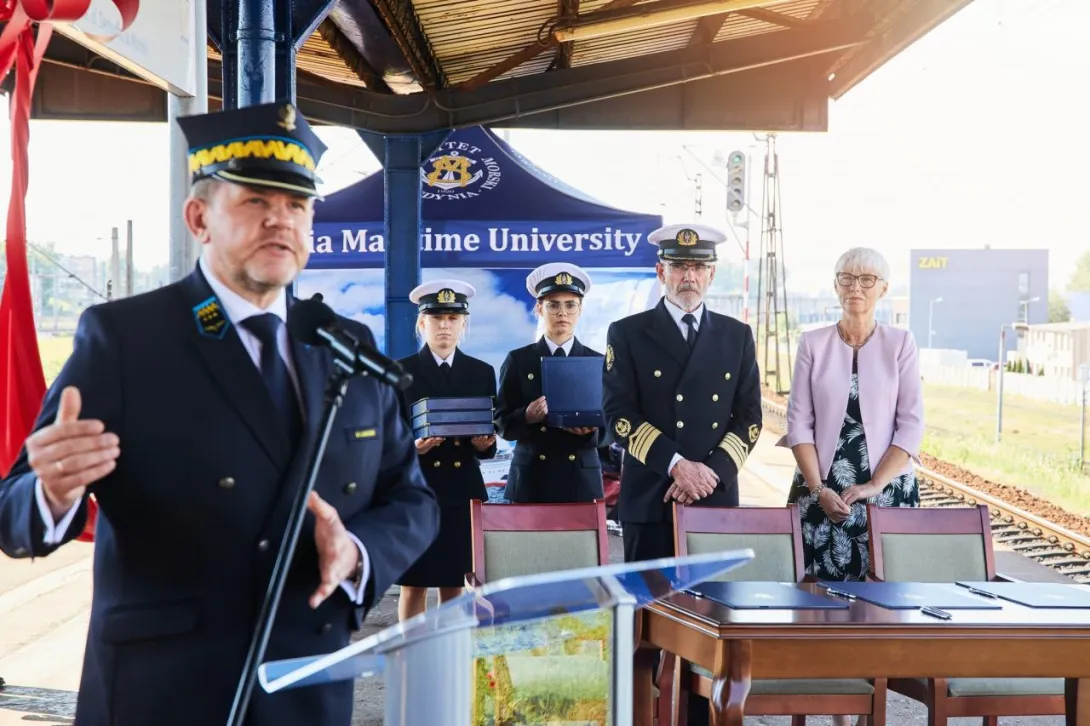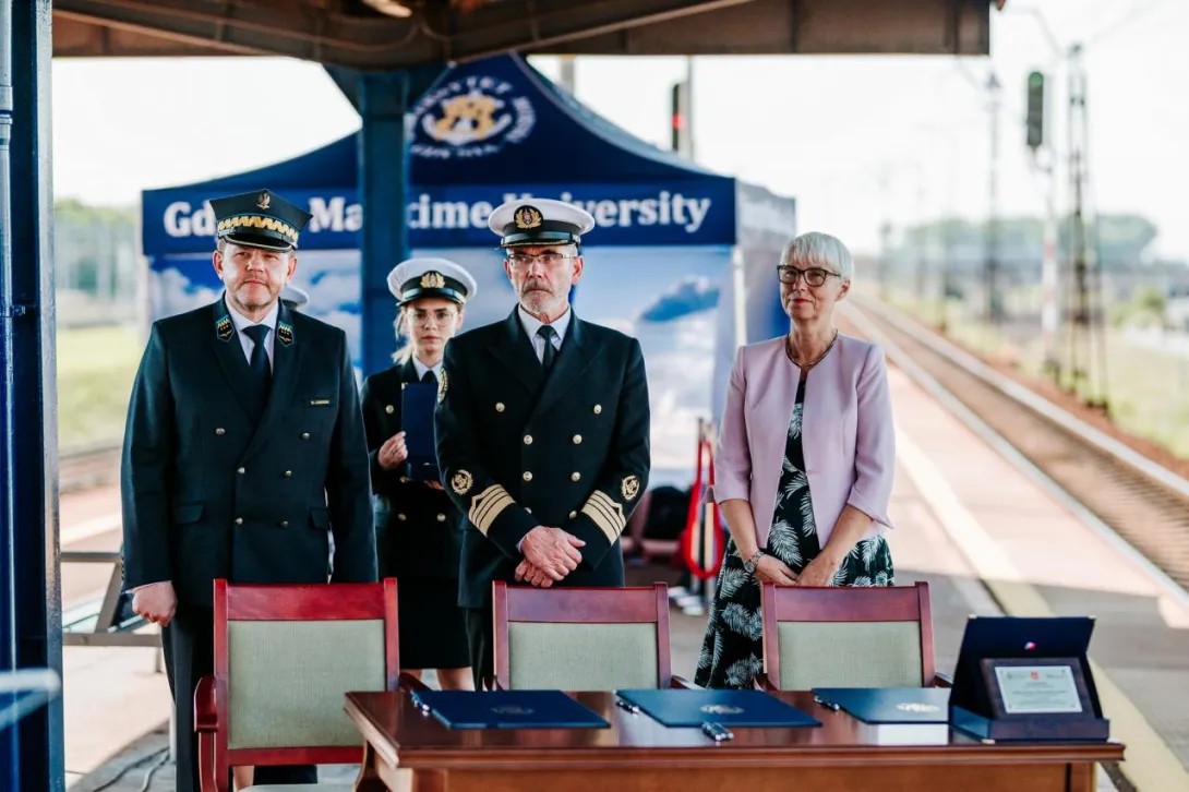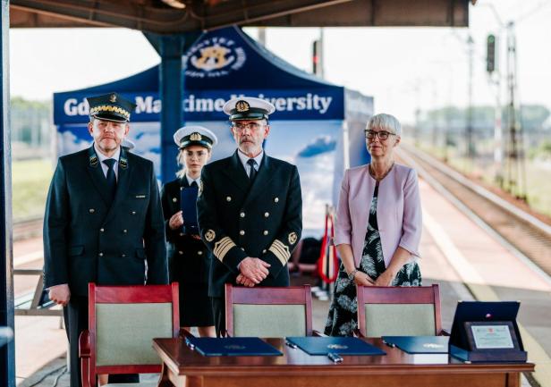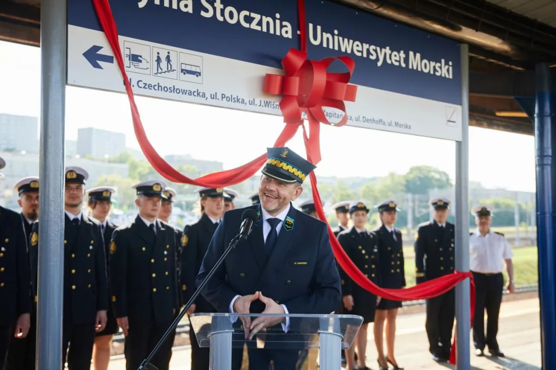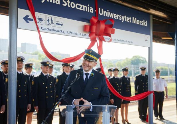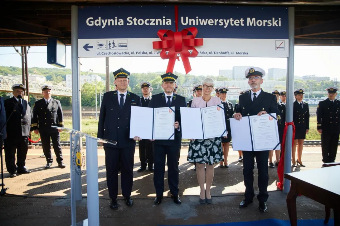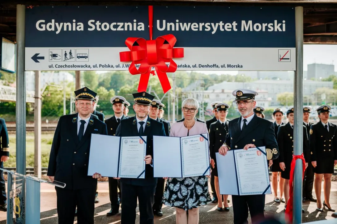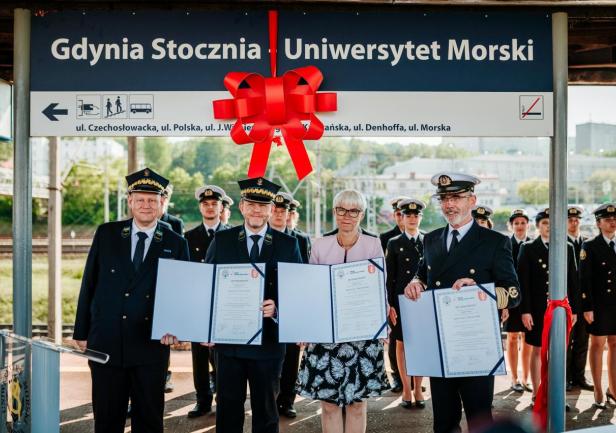 Ostatnim punktem obchodów 100-lecia Uczelni było odsłonięcie nowej nazwy przystanku Gdynia Stocznia. Od 17 czerwca 2020 roku oficjalnie jest to przystanek Gdynia Stocznia - Uniwersytet Morski. W uroczystości wzięli udział JM Rektor prof. Janusz Zarębski, Prezes PKP SKM w Trójmieście sp. z o. o. Maciej Lignowski, Przewodnicząca Rady Miasta Gdyni Joanna Zielińska, członek zarządu PKP S.A. Andrzej Olszewski, rektor-elekt prof. Adam Weintrit, prorektor ds. kształcenia Andrzej Miszczak oraz studenci i pracownicy Uniwersytetu Morskiego, a także pracownicy Szybkiej Kolei Miejskiej. Po krótkich przemówieniach nastąpiło uroczyste odsłonięcie tablicy przystankowej i podpisanie aktu pamiątkowego. JM Rektor wręczył zgromadzonym gościom pamiątkowe ryngrafy oraz zaprosił do wspólnego zdjęcia. Tym miłym akcentem zakończono pierwszy dzień obchodów 100-lecia Uniwersytetu Morskiego w Gdyni.