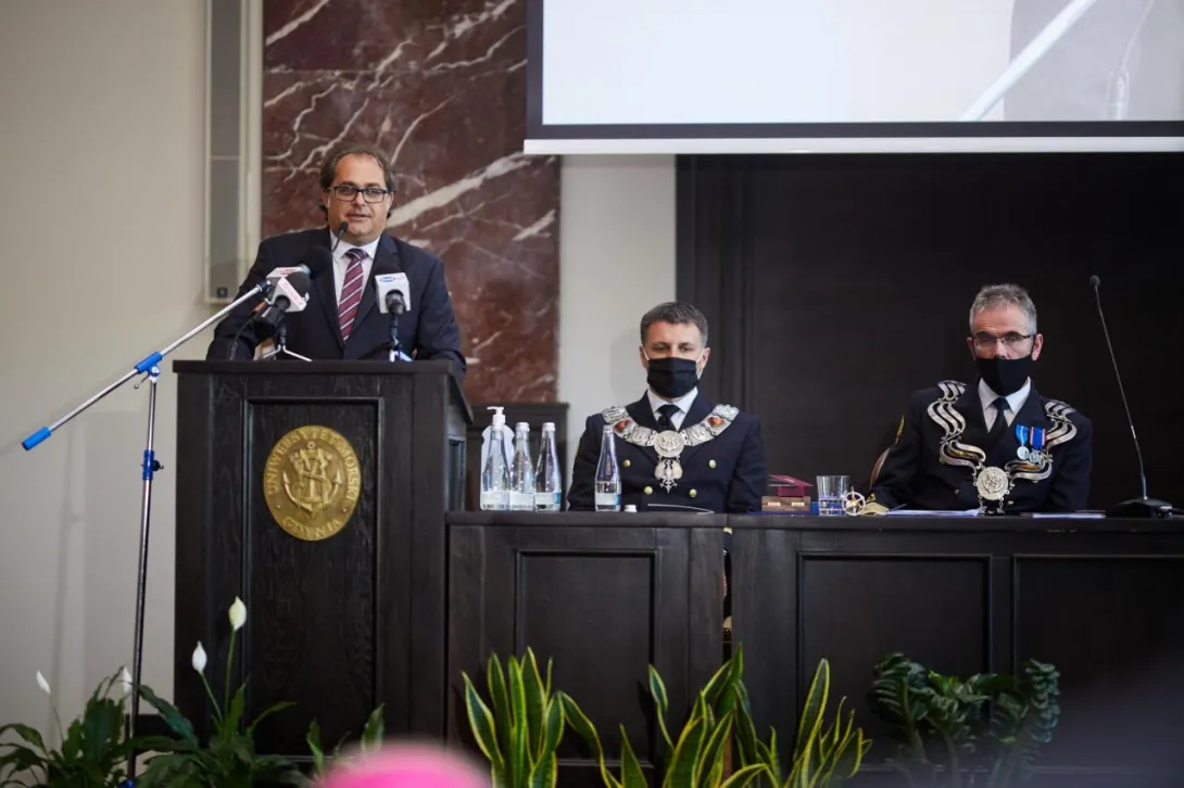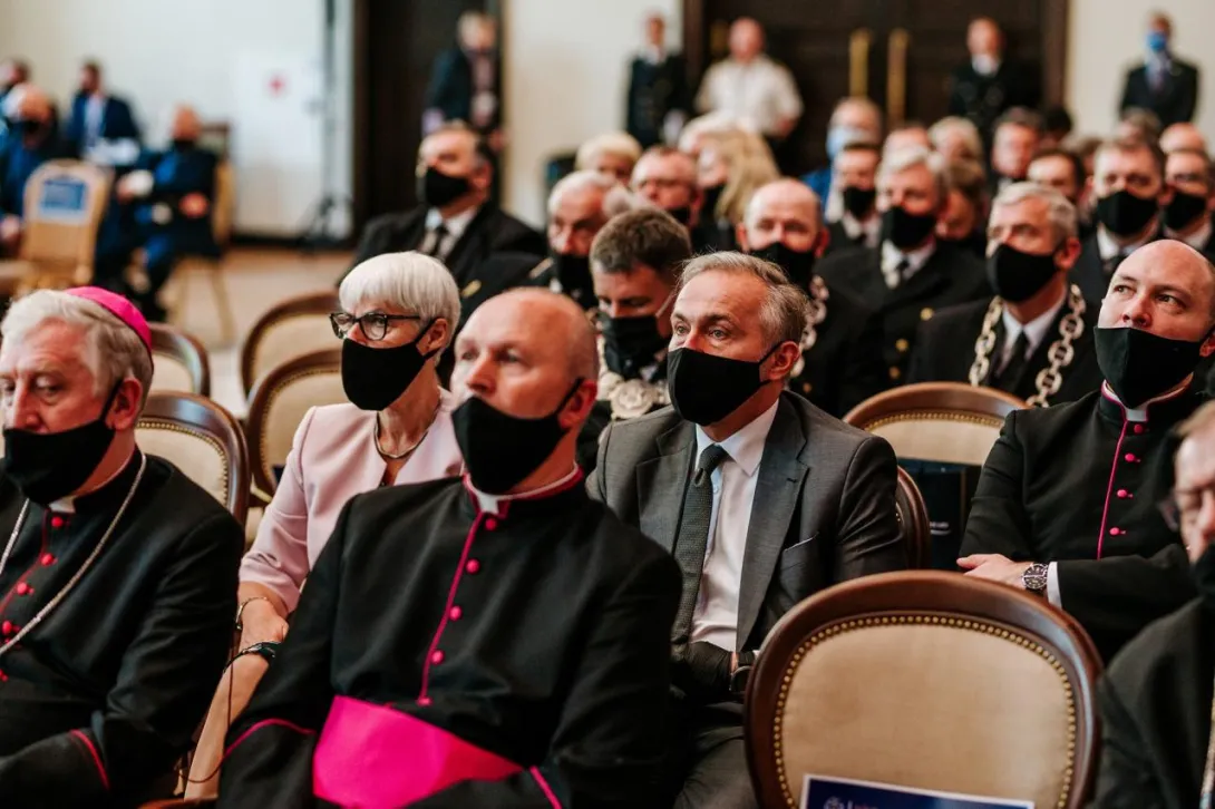 Po mszy św. odbyło się uroczyste posiedzenie Senatu UMG. Wszystkich przybyłych gości zgromadzonych w Auli im. Tadeusza Meissnera, a także w małych aulach B-20 i B-21 przywitał JM Rektor prof. Janusz Zarębski, który wygłosił okolicznościowe przemówienie.
