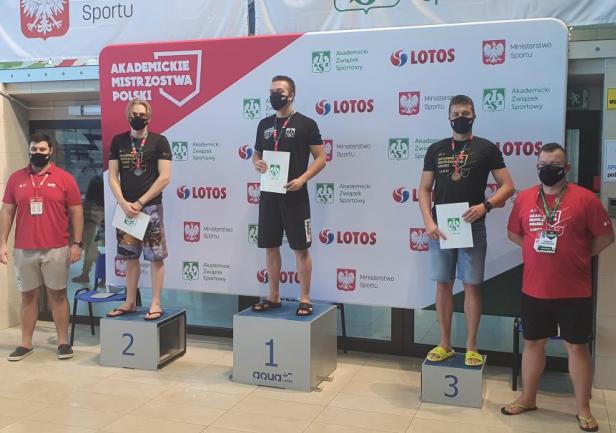 W dniach 09 – 11 października 2020 roku reprezentacja UMG wzięła udział w Akademickich Mistrzostwach Polski w Pływaniu. W zawodach naszą Uczelnię reprezentowali: Szymon Romaniec - WM, Karol Cieślukowski – WE, Maciej Jurgiel – WN oraz Mateusz Gwiazdowski – WM.