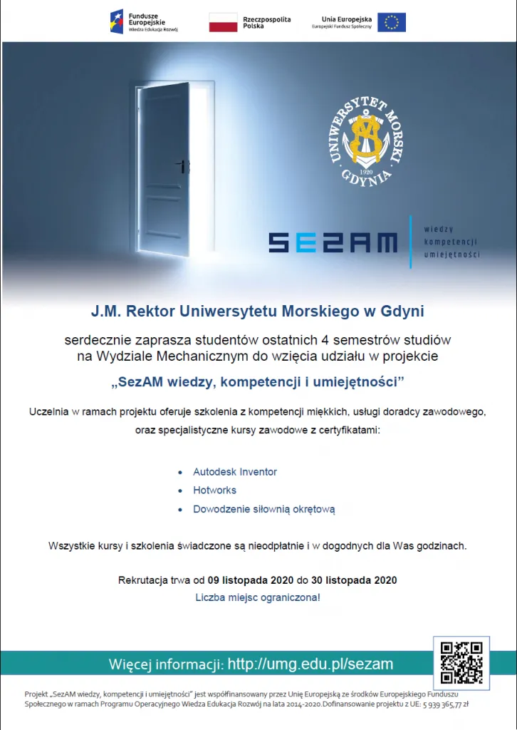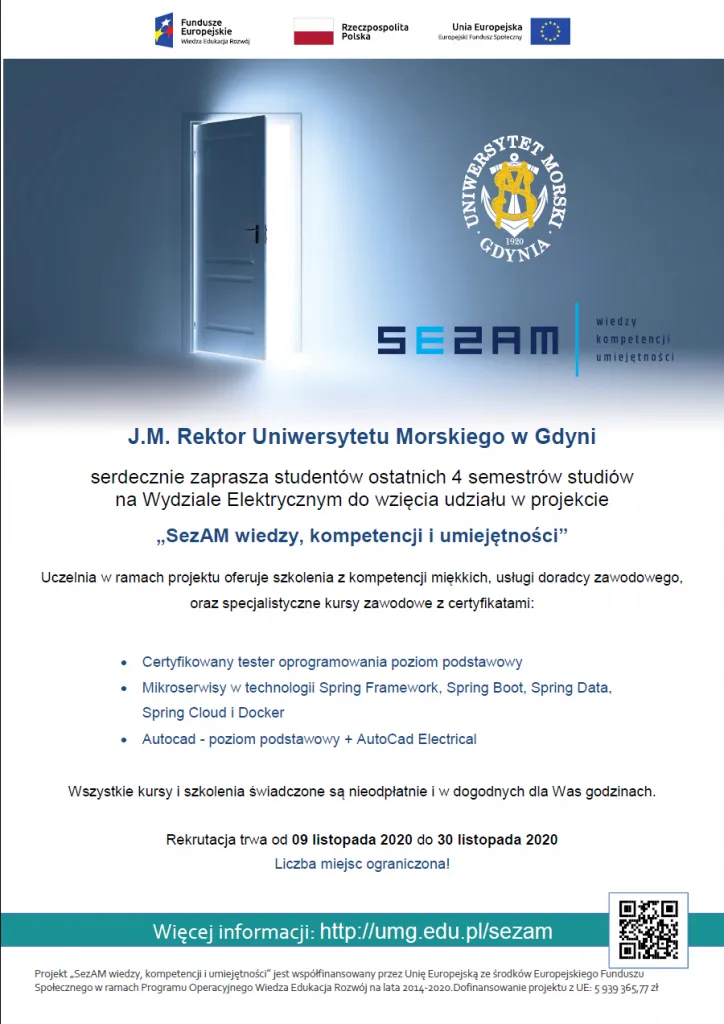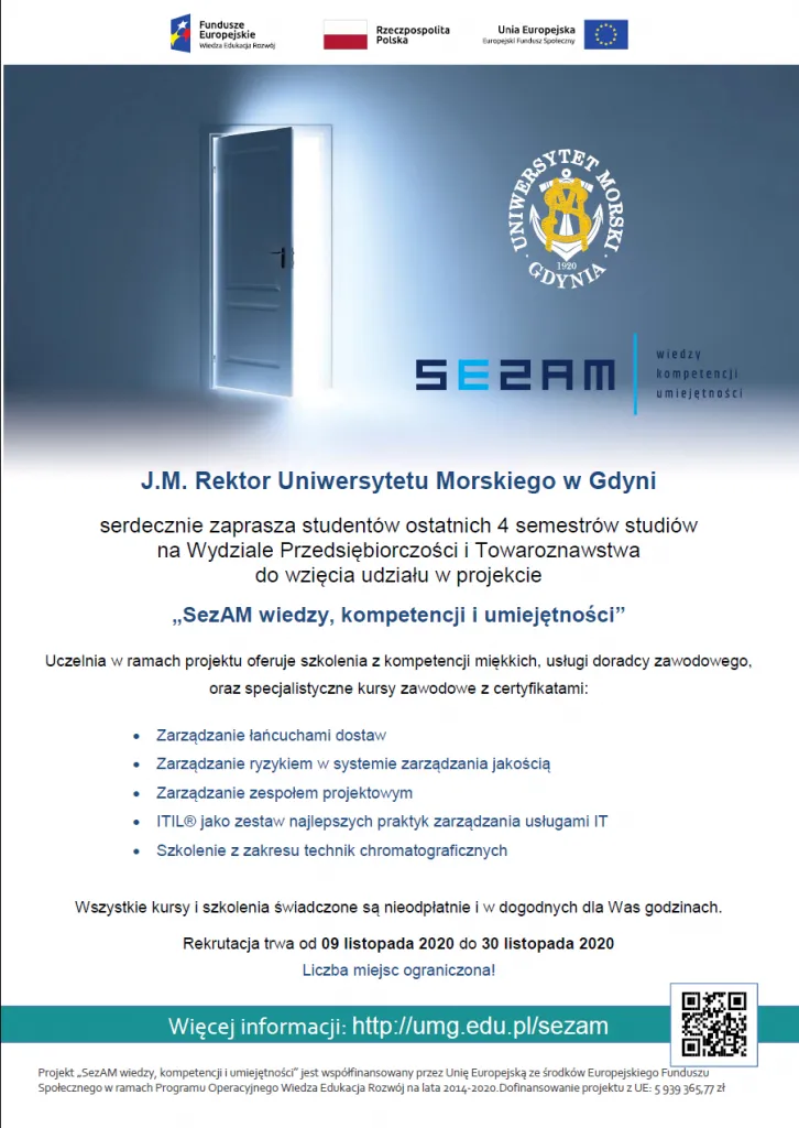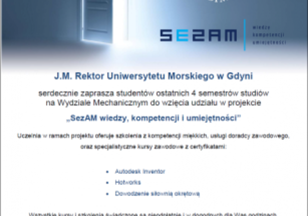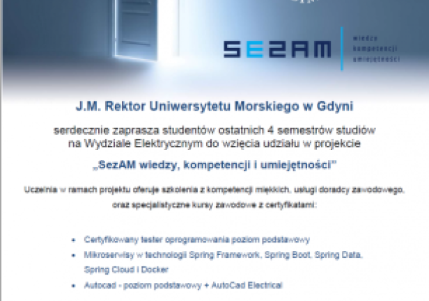 Zapraszamy Studentów ostatnich semestrów do wzięcia udziału w projekcie „SezAM wiedzy, kompetencji i umiejętności” !