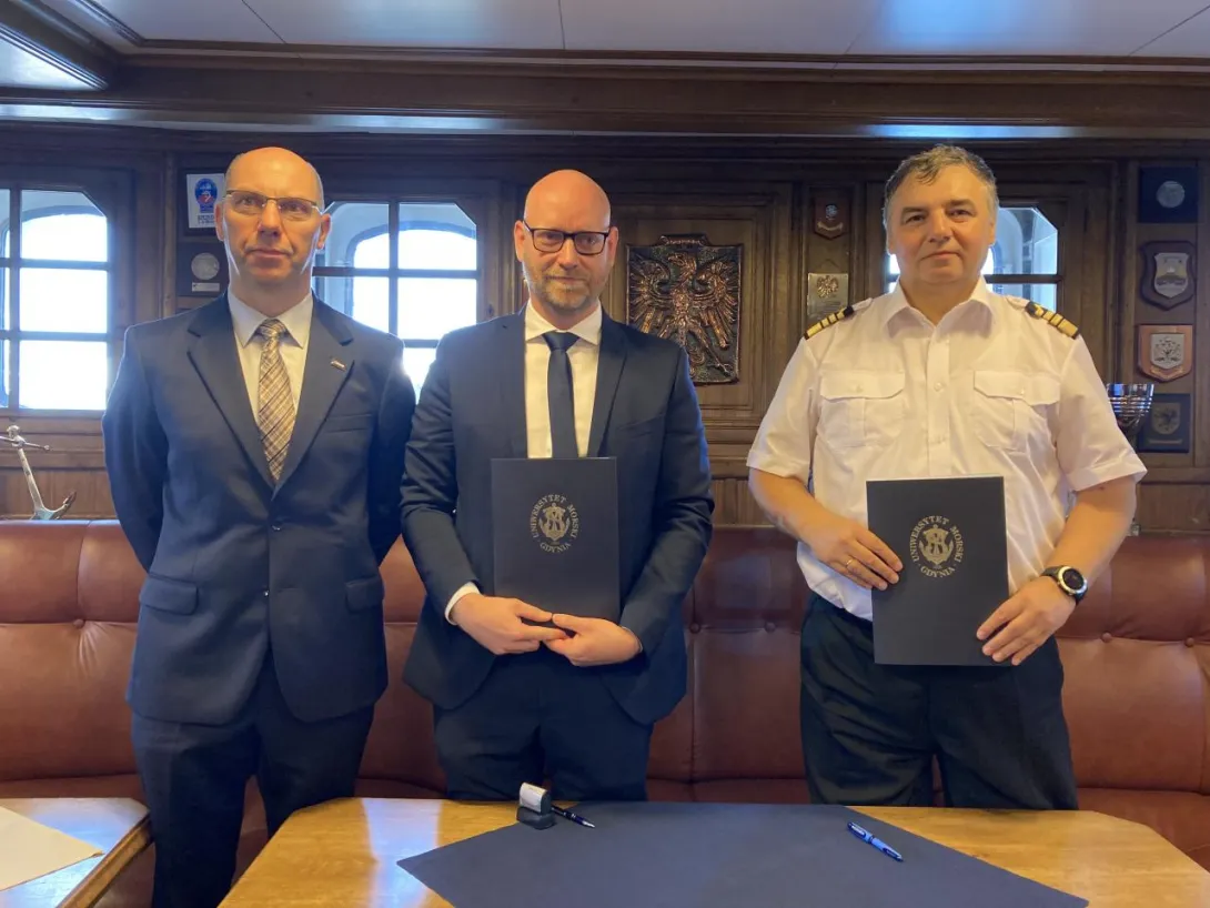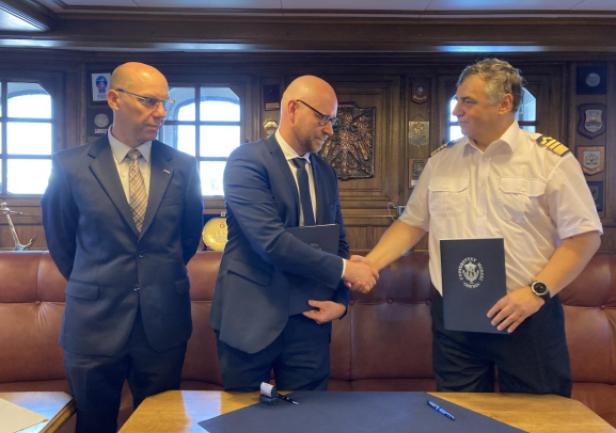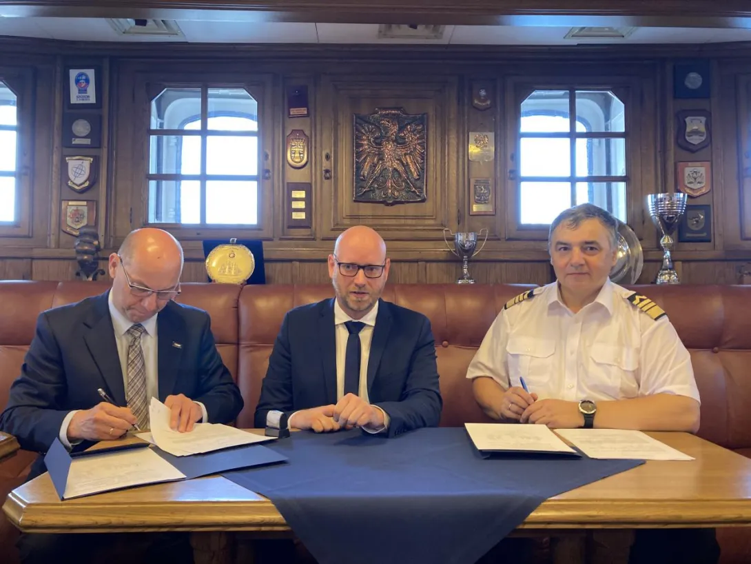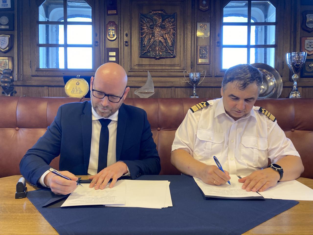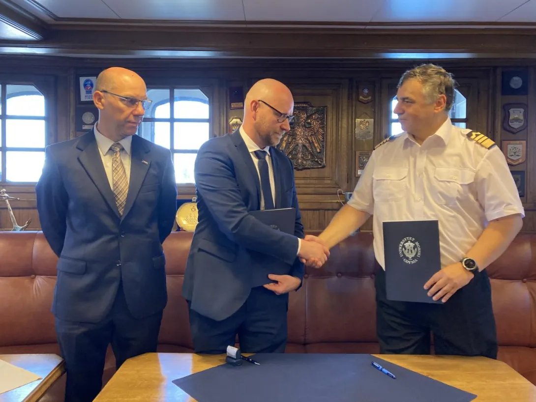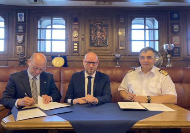 W dniu 15 lipca br. na pokładzie fregaty szkolnej Dar Młodzieży Rektor Uniwersytetu Morskiego w Gdyni prof. dr hab. inż. kpt. ż.w. Adam Weintrit, Prezes MEWO SA Paweł Gajewski oraz Wiceprezes MEWO SA Michał Głuszczyński podpisali porozumienie o współpracy pomiędzy Uniwersytetem, a firmą MEWO SA.