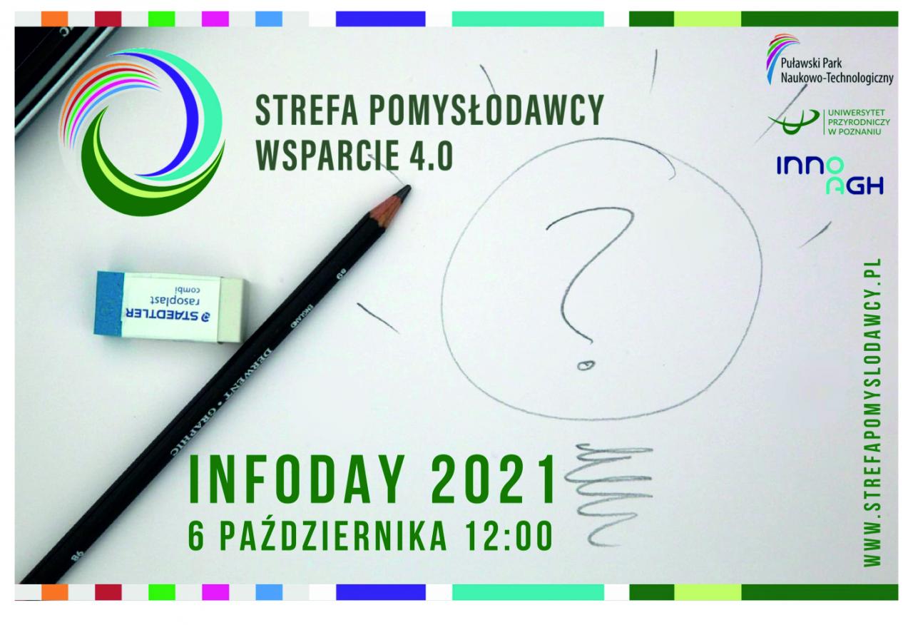 Serdecznie zapraszamy doktorantów i studentów na spotkanie informacyjne INFODAY dotyczące pilotażowego projektu Ministerstwa Rozwoju, Pracy i Technologii: Strefa Pomysłodawcy – Wsparcie 4.0. Spotkanie odbędzie się formie online, 6 października 2021r. (środa), o godzinie 12:00.