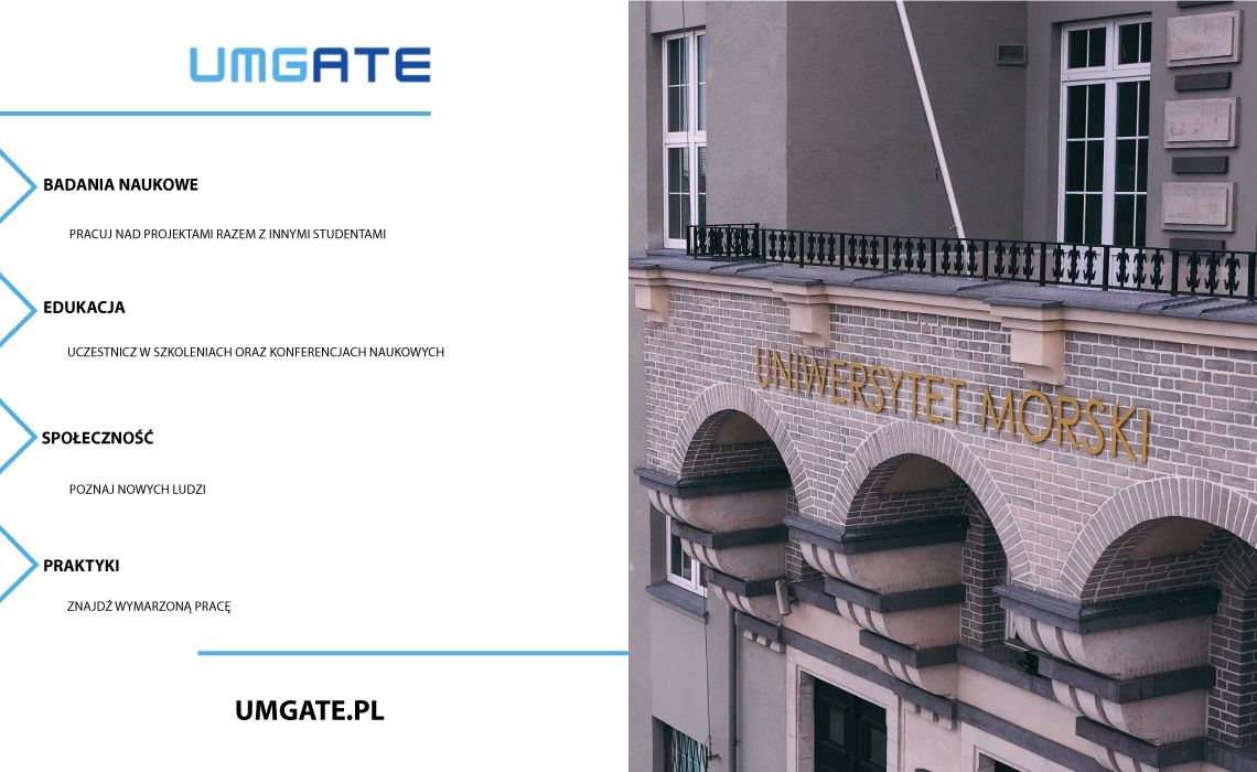 UMGATE to grupa studentów Uniwersytetu Morskiego w Gdyni, którzy chcą rozwijać swoje zainteresowania w trakcie studiów i tworzyć nowe rozwiązania z zakresu nowoczesnych technologii.