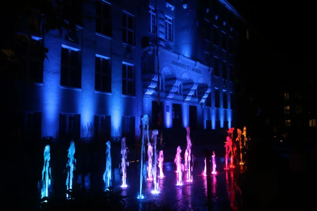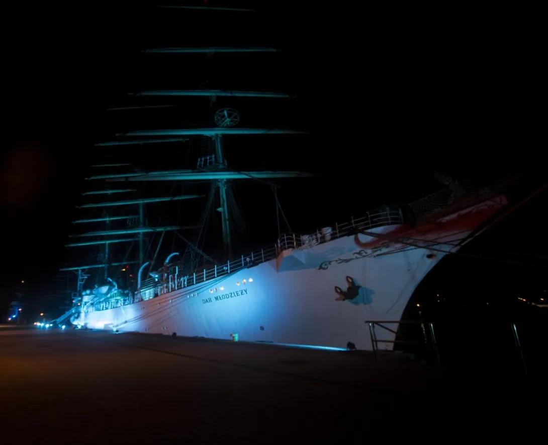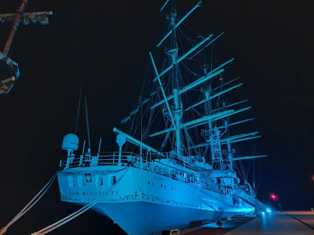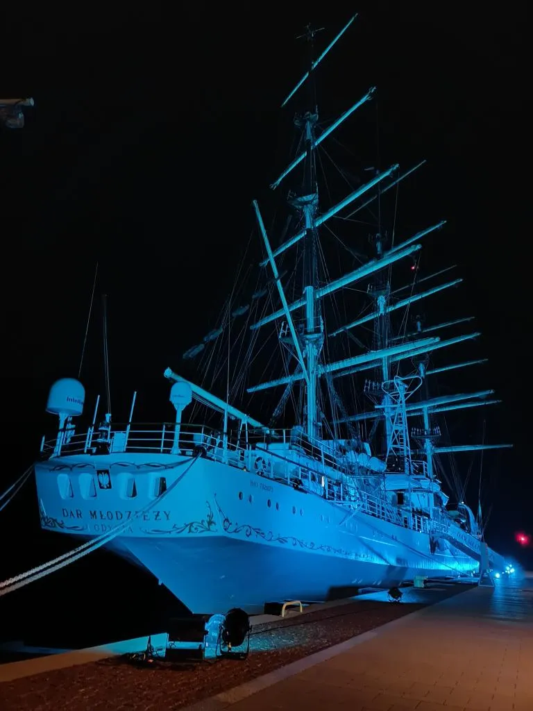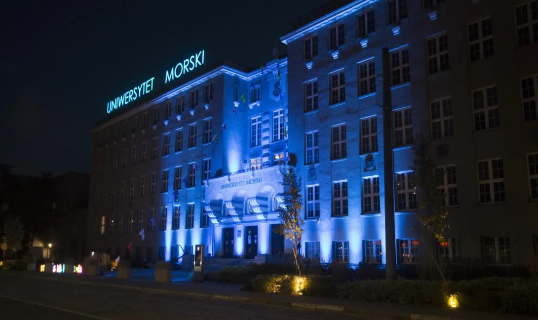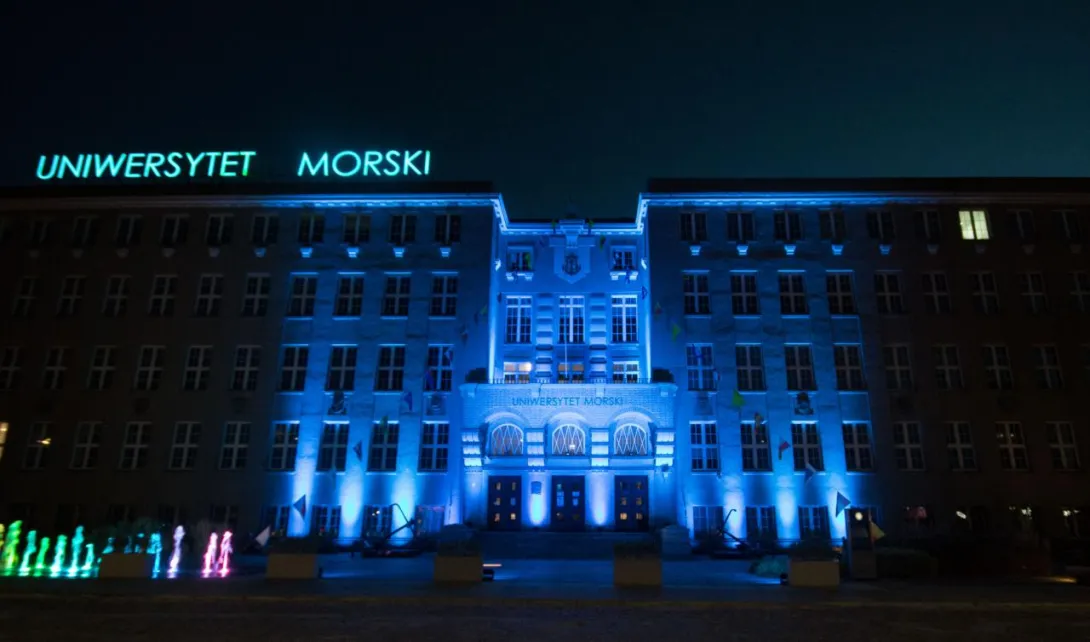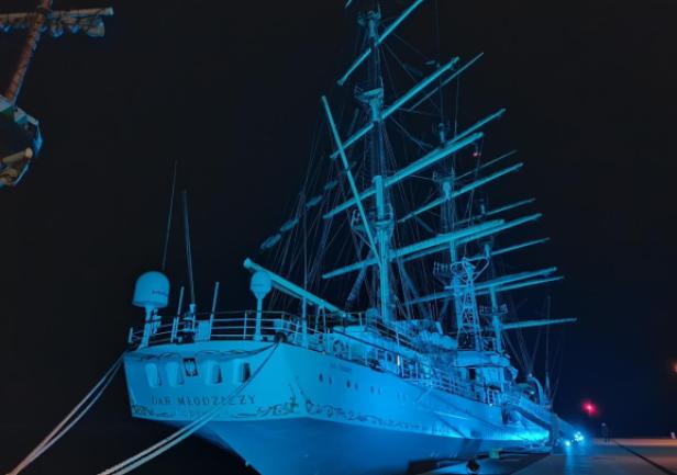 Na niebiesko rozbłysły w czwartkowy wieczór, 30 września br. wybrane obiekty UMG. Tę szczególną oprawę świetlną zyskał żaglowiec „Dar Młodzieży” zacumowany przy Nabrzeżu Pomorskim w Gdyni oraz budynek główny Uniwersytetu Morskiego w Gdyni przy ul. Morskiej.