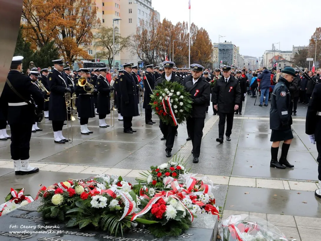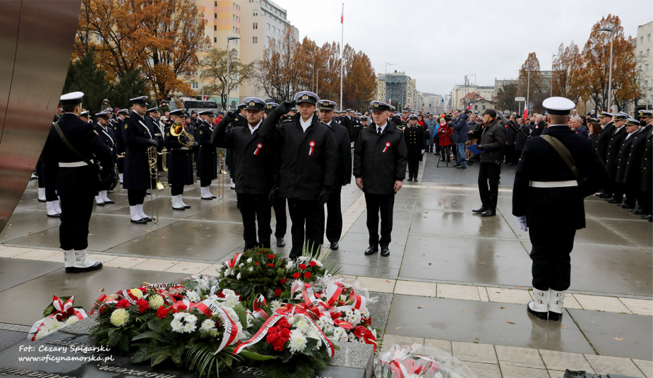 JM Rektor prof. dr hab. inż. kpt. ż.w. Adam Weintrit oraz Prorektorzy: dr hab. Dariusz Barbucha, prof. UMG i dr hab. inż. Mirosław Czechowski, prof. UMG, a także studenci z Kompanii Reprezentacyjnej UMG uczestniczyli w gdyńskich uroczystościach Narodowego Święta Niepodległości.