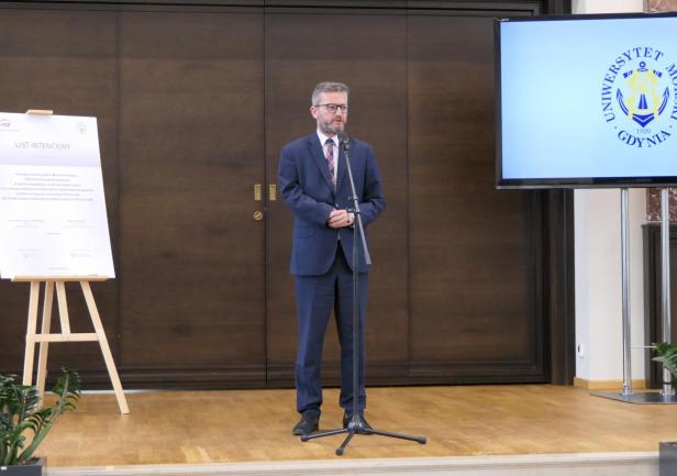 Gratulacje z okazji rozpoczętej współpracy pomiędzy Uniwersytetem Morskiem w Gdyni i PGE Polską Grupą Energetyczną złożył również Wojewoda Pomorski Dariusz Drelich.