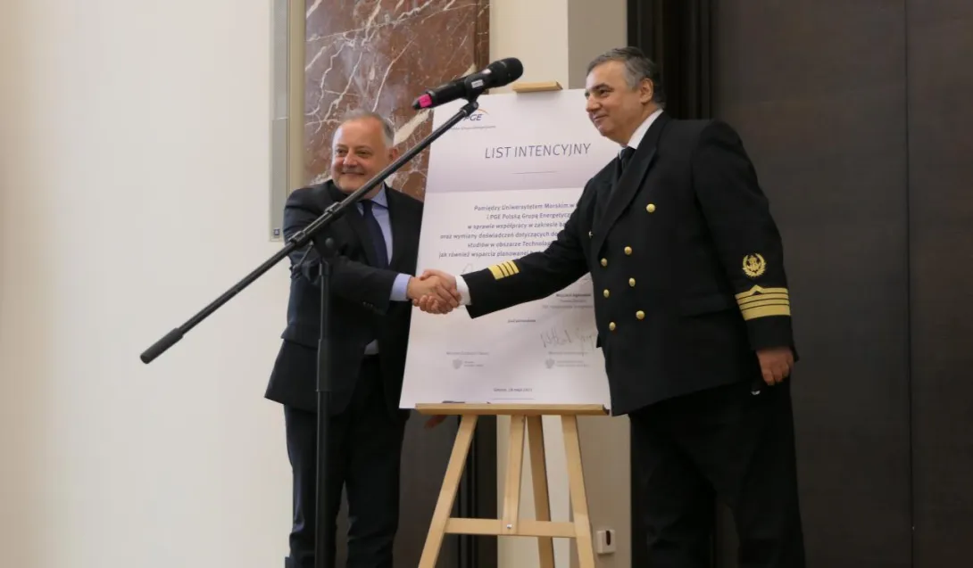 18 maja br. Uniwersytet Morski w Gdyni i PGE podpisały list intencyjny o współpracy eksperckiej w zakresie prac badawczych i wdrożeniowych. Celem jest rozwijanie morskiej energetyki wiatrowej w Polsce. Wspólne działania obejmują szeroki zakres badań i analiz, wymianę doświadczeń, jak również pomoc w utworzeniu i wyposażeniu Centrum Offshore UMG.