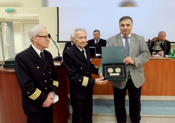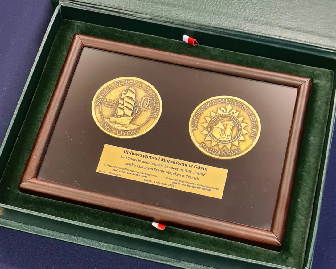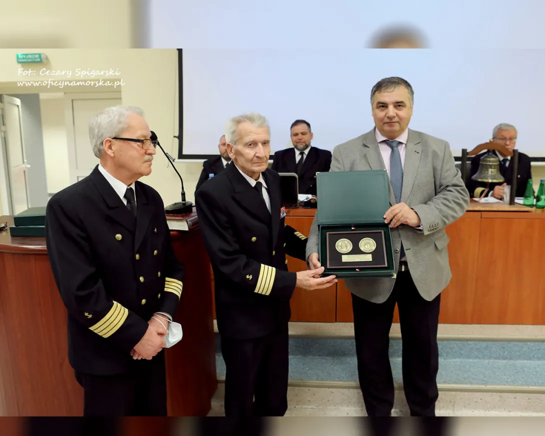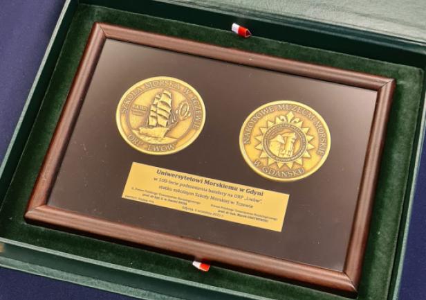 W dalszej części spotkania wręczone zostały okolicznościowe medale wybite przez Polskie Towarzystwo Nautologiczne – dla Uniwersytetu Morskiego, dla Duszpasterstwa Ludzi Morza oraz dla Narodowego Muzeum Morskiego. Medale na ręce JM Rektora UMG prof. dr. hab. inż. kpt. ż.w. Adama Weintrita, ks. dr. Edwarda Pracza oraz dr. Roberta Domżała przekazali prof. dr hab. inż. kpt. ż.w. Daniel Duda i dr kpt. ż.w. Andrzej Królikowski.