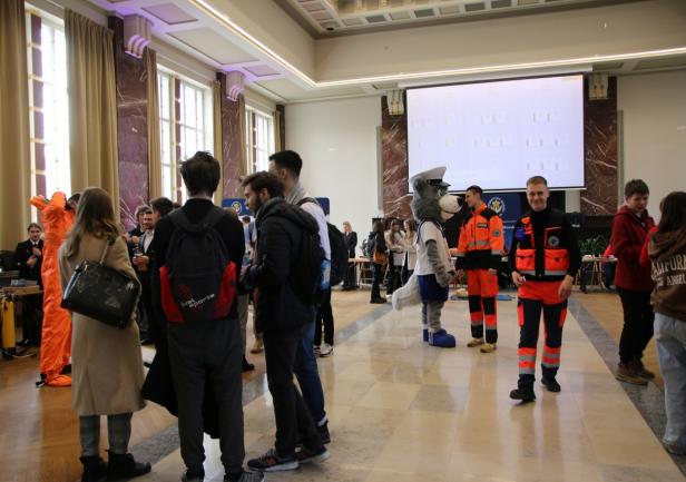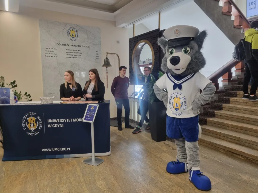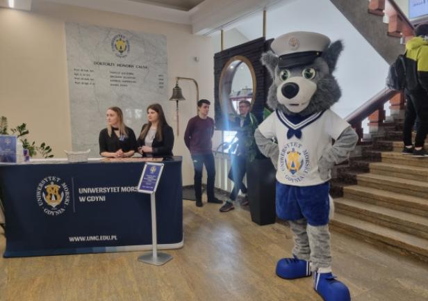 Wszystkich przybyłych gości, w murach naszej Uczelni z radością witał nasz Wilk Morski, który chętnie w tym dniu pozował do zdjęć. Odwiedzający Uniwersytet Morski w Gdyni uczniowie mieli możliwość wziąć udział w zajęciach i warsztatach przygotowanych specjalnie dla nich przez pracowników Uniwersytetu.