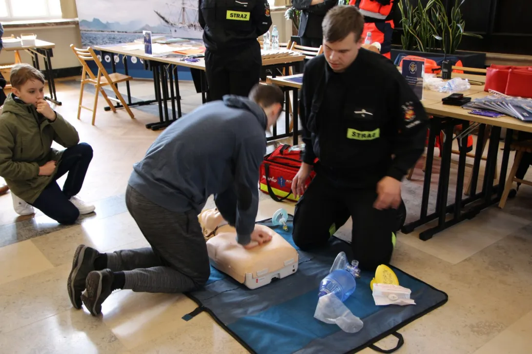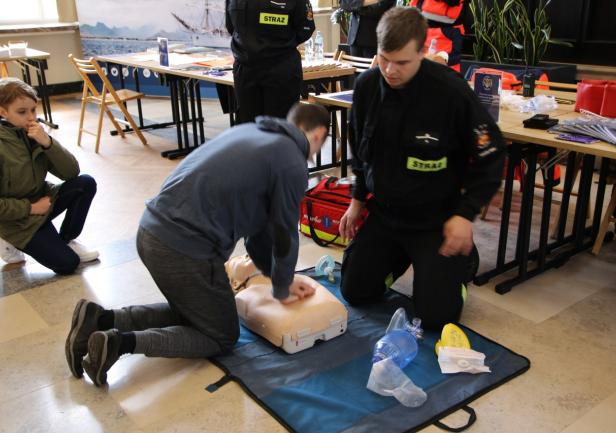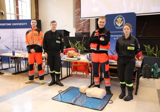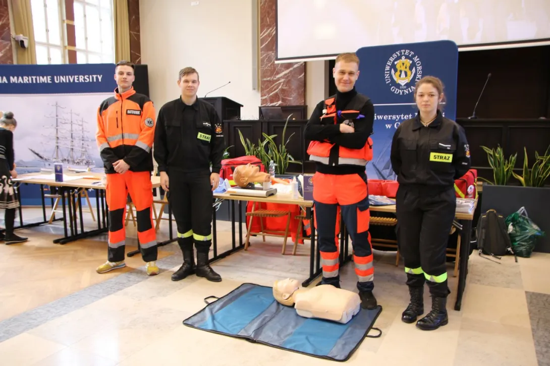 Specjalnie dla naszych gości, studenci Wydziału Nawigacyjnego zorganizowali instruktażowy pokaz udzielania pierwszej pomocy.