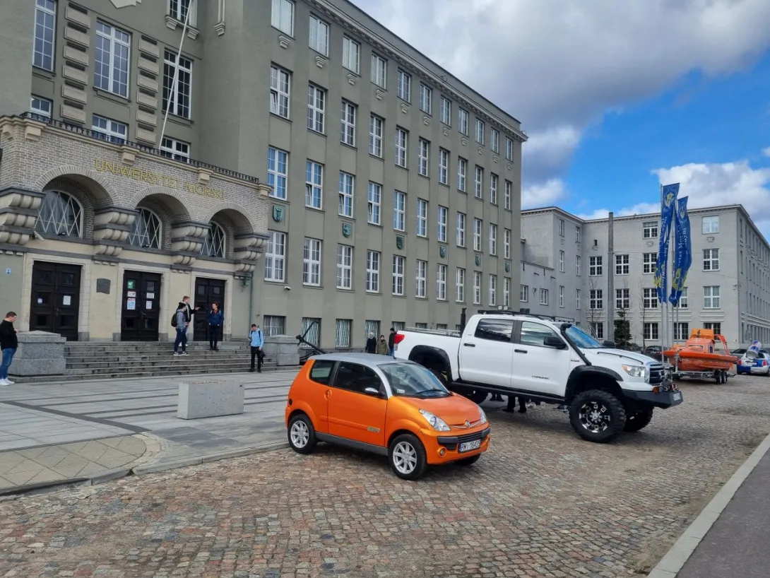 Przed gmachem głównym Uniwersytetu można było podziwiać auta z napędem elektrycznym, RIB’a oraz Toyotę Tundrę, dla której trudne warunki drogowe nie istnieją.