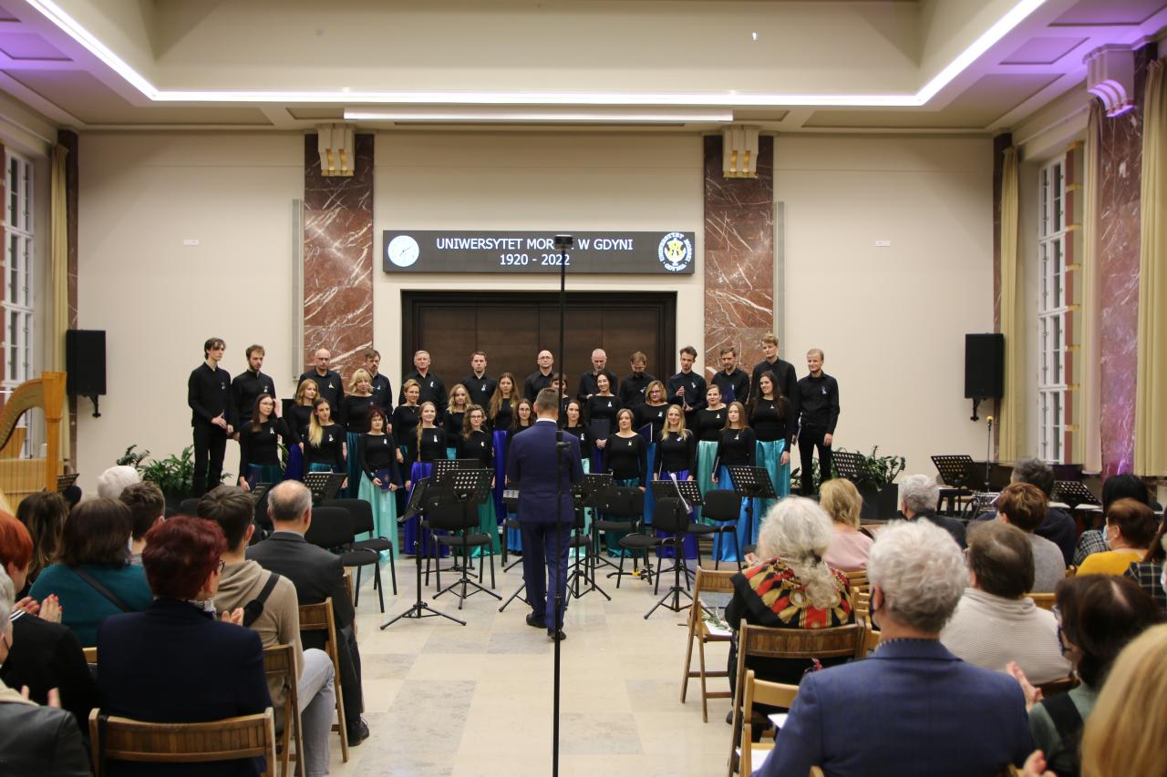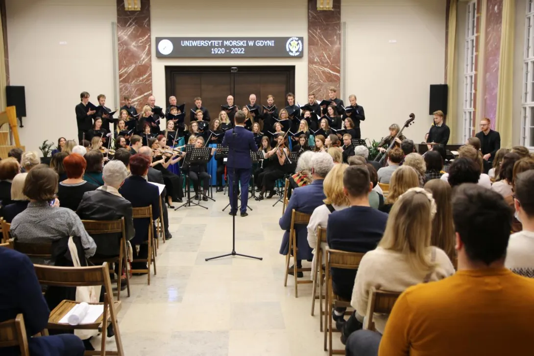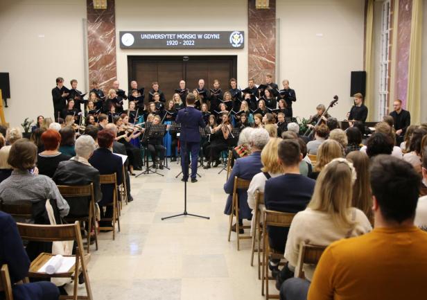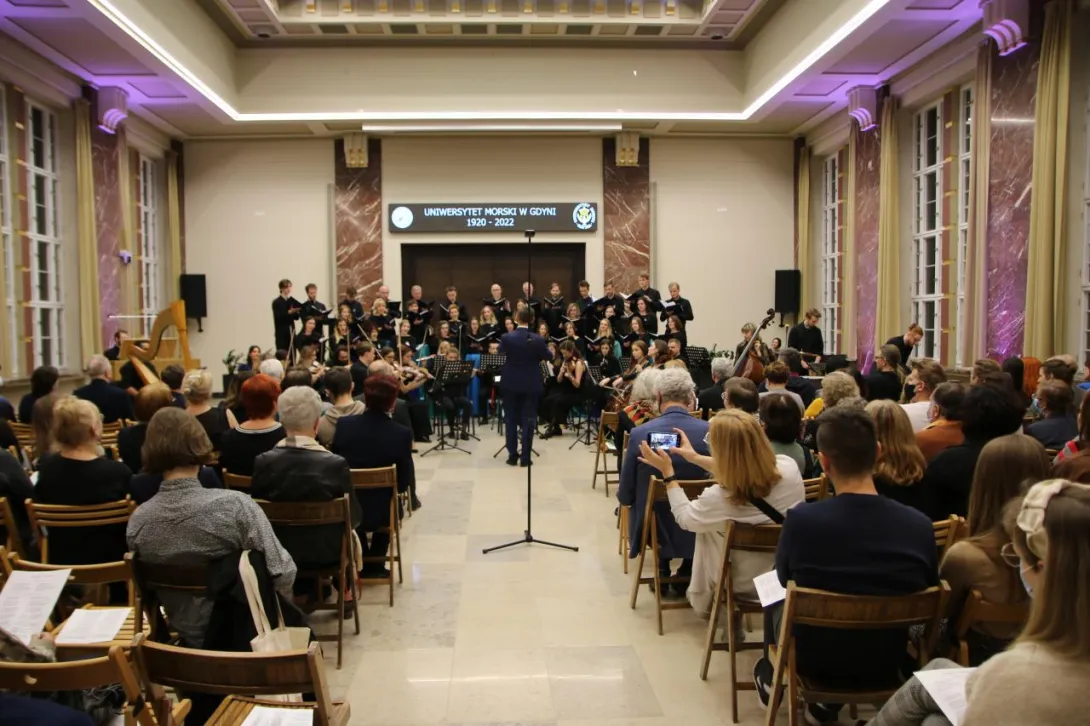 W niedzielę, 13.03.2022 odbył się koncert w wykonaniu Akademickiego Chóru Uniwersytetu Morskiego z towarzyszeniem Orkiestry Kameralnej BalticAlians. Partie solowe wykonała p. Anna Fabrello, solistka Opery Bałtyckiej i Profesor Akademii Muzycznej w Gdańsku. Program koncertu wypełniły zarówno utwory a cappella, jak i dzieła wokalno-instrumentalne. Licznie zgromadzona publiczność nagrodziła wykonawców owacjami na stojąco i nie chciała wypuścić artystów bez utworu "na bis".