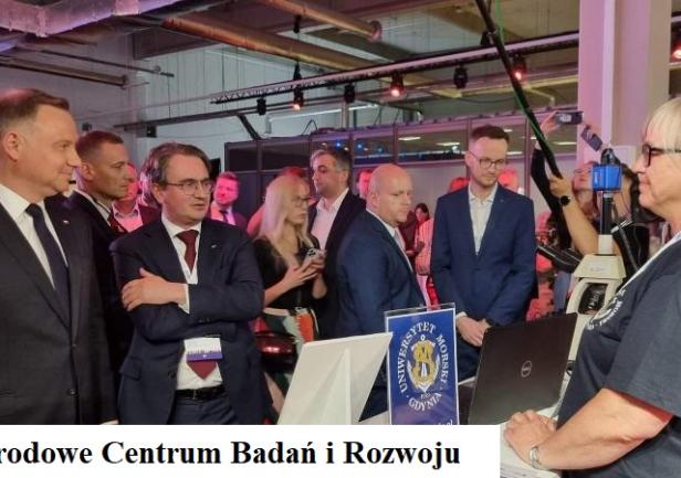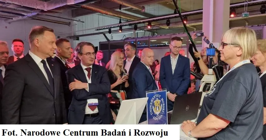 Jednym z głównych partnerów tegorocznego Kongresu 590 było Narodowe Centrum Badań i Rozwoju, które dla swej działalności wybrało hasło ”Przyszłość dzieje się u nas!”. Do udziału w tym wydarzeniu zaproszono trzech wyróżnionych beneficjentów, w tym nasz zespół, realizujący projekt Akademia Czystego Morza, wspierany przez Fundusze UE w ramach programu POWER. Przez dwa dni mieliśmy możliwość prezentować idee i osiągnięcia projektowe, ale również promować Uniwersytet Morski w Gdyni. Nasze stylowe koszulki bardzo wyróżniały się na tle pozostałych stoisk, a tematyka ochrony wód Morza Bałtyckiego oraz prawidłowej segregacji i zagospodarowania odpadów wzbudzała zainteresowanie nawet w tak biznesowo-eksperckim towarzystwie. Uczestnicy Kongresu mogli m.in. skorzystać z mikroskopu i przekonać się jakie zmiany następują w różnych materiałach polimerowych pod wpływem wody morskiej. Wykorzystaliśmy do tego próby przygotowane przez dr inż. Aleksandrę Heimowską z Katedry Jakości Produktów Przemysłowych i Chemii. Eksperci NCBiR prowadzili interesujące debaty związane z rozwojem technologii i cyfryzacji oraz tworzeniem innowacyjnych magazynów energii. Pomimo wielu zobowiązań również Pan Prezydent RP Andrzej Duda znalazł czas aby zapoznać się z osiągnięciami NCBiR, które (przy naszym stanowisku) przedstawił Dyrektor NCBR - dr Remigiusz Kopoczek.