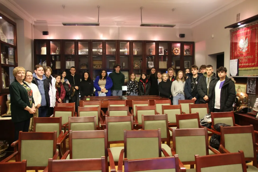 Przyszli maturzyści swoją wizytę w Uniwersytecie Morskim w Gdyni rozpoczęli od zwiedzania Sali Tradycji, w której poznali bogatą historię naszej Uczelni.