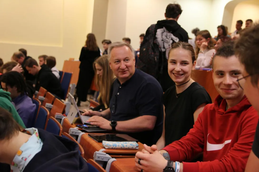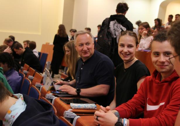 Na pewno taką, że marzenia warto realizować i nigdy nie jest za późno na ukończenie studiów. To zupełnie inne doświadczenie niż studiowanie w wieku 20 lat. Często jest to głównie systematyzowanie wiedzy, a nie nauka stricte. Oczywiście, że zastanawiałem się, jak to będzie podczas zajęć, gdzie wokół mnie będzie młodzież w wieku 19 lat. Zdarzyło się, że gdy wszedłem do sali wykładowej, studenci ukłonili się, myśląc, że będę te zajęcia prowadzić. Mam córkę w ich wieku. A tymczasem siedzę razem z nimi, słucham wykładów, a czasami żywo dyskutuję z prowadzącymi, bo mam doświadczenia, których studenci nie mieli jeszcze możliwości zdobyć. To procentuje w obie strony. Warsztaty i wykłady przeradzają się w ciekawą dyskusję, rzeczowe rozwiązywanie problemów. Ja to lubię, ale widzę, że młodzież też to docenia. Oni mnie zaakceptowali i uczestniczę w pełni w całym życiu studenckim ze wszystkimi jego blaskami… i na tym stwierdzeniu poprzestanę (śmiech).