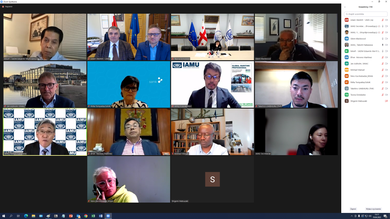 W dniach 18-19 kwietnia b.r. odbyło się w trybie on-line posiedzenie Międzynarodowej Rady Wykonawczej (International Executive Board) IAMU. W spotkaniu tym wzięli udział przedstawiciele uczelni morskich reprezentujących poszczególne regiony świata oraz pracownicy sekretariatu IAMU w Tokio.