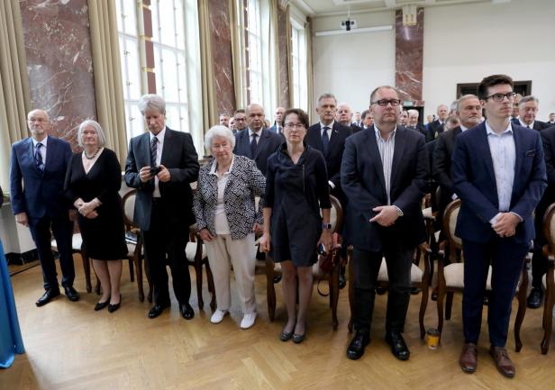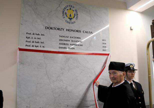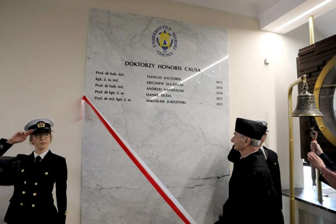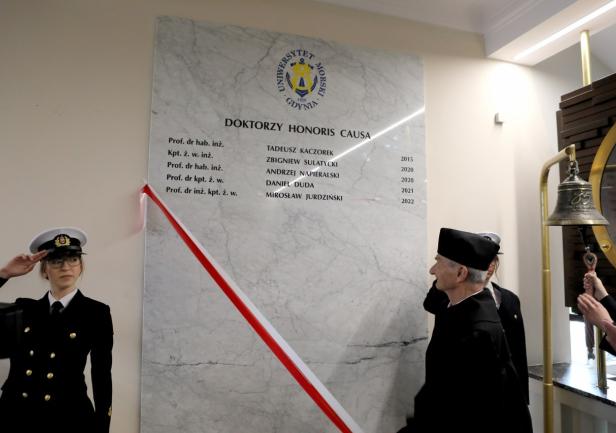 Uroczystość zakończyła się odsłonięciem tablicy z nazwiskami Doktorów Honoris Causa w holu głównym Uniwersytetu Morskiego w Gdyni.