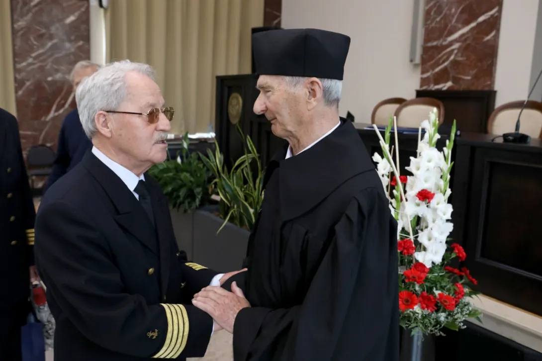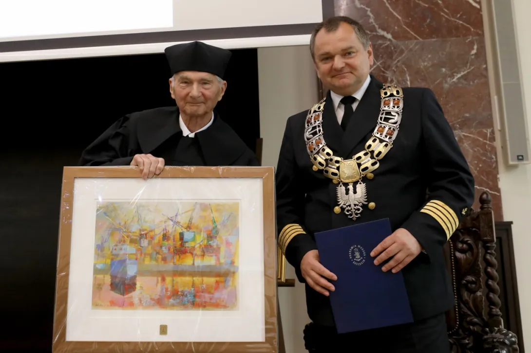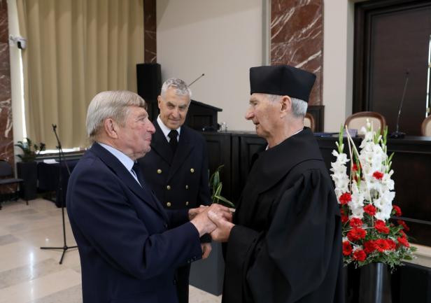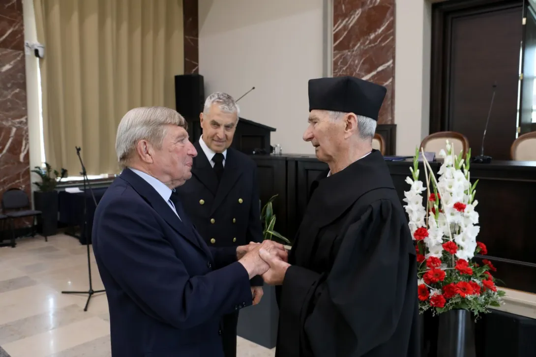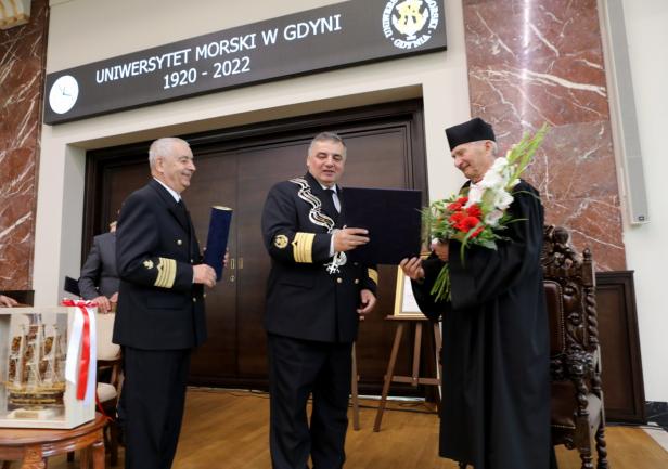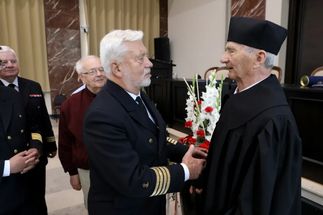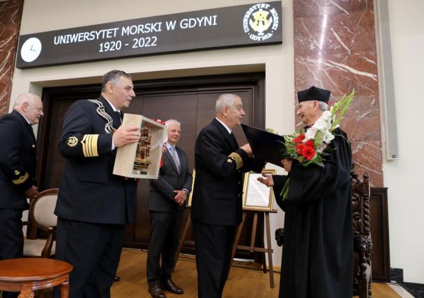 - Serdeczne podziękowania Panie Profesorze za cały wkład, który Pan wniósł w rozwój szkolnictwa morskiego, w kształcenie młodzieży, przede wszystkim z rozwój naszego kraju, bo to jest niezwykle istotne. Przecież to się wszystko tworzyło w latach powojennych, kiedy wszyscy byli pogubieni. (…) Mam prośbę, aby nigdzie Pan nie odchodził, tylko pozostał na tej Uczelni, kształcąc dalej i wnosząc to, co najpiękniejsze dla świata morskiego, a więc wiedzę w zakresie nawigacji. Dziękuję bardzo!