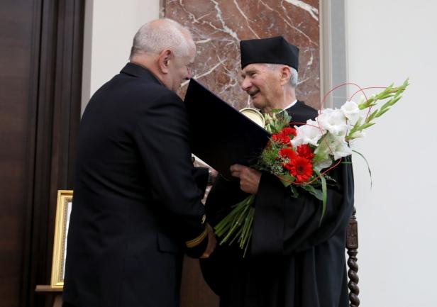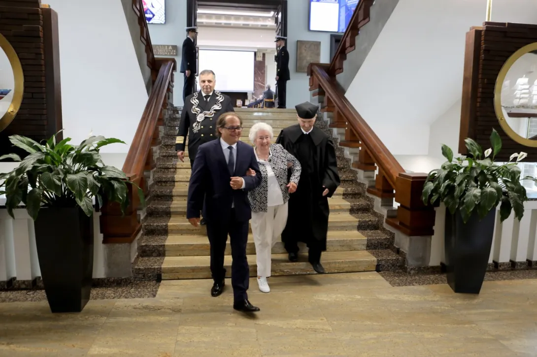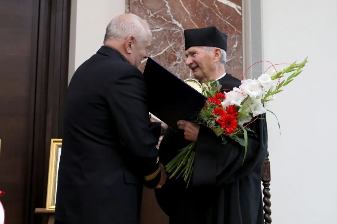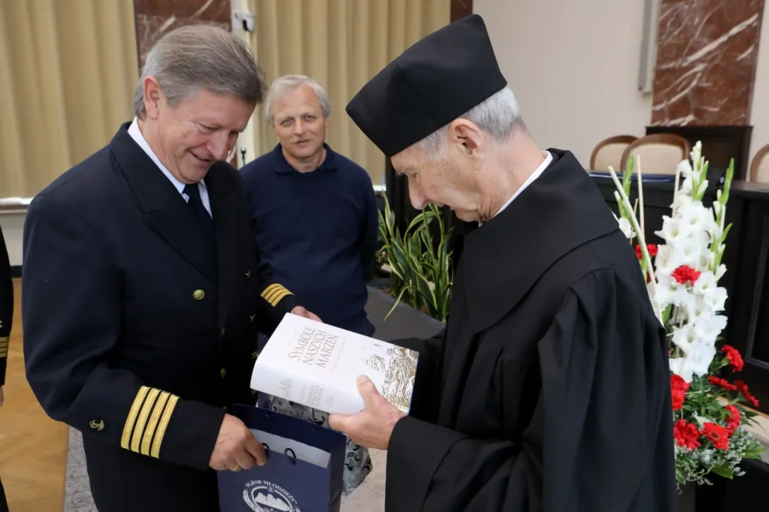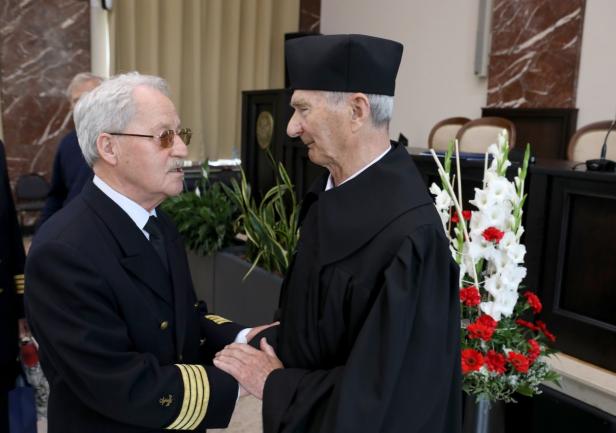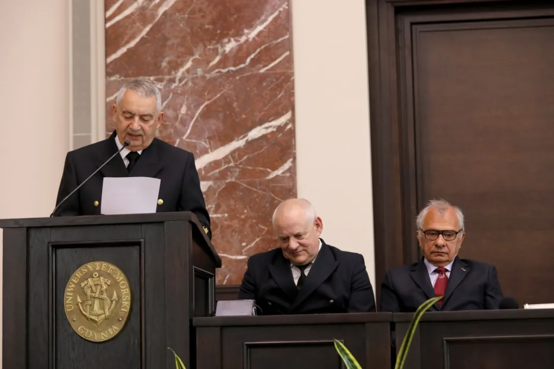 - Serdeczne podziękowania Panie Profesorze za cały wkład, który Pan wniósł w rozwój szkolnictwa morskiego, w kształcenie młodzieży, przede wszystkim z rozwój naszego kraju, bo to jest niezwykle istotne. Przecież to się wszystko tworzyło w latach powojennych, kiedy wszyscy byli pogubieni. (…) Mam prośbę, aby nigdzie Pan nie odchodził, tylko pozostał na tej Uczelni, kształcąc dalej i wnosząc to, co najpiękniejsze dla świata morskiego, a więc wiedzę w zakresie nawigacji. Dziękuję bardzo!
