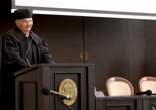 Laudację wygłosił prof. dr hab. Piotr Jędrzejowicz. Promotor doktoratu honorowego mówił między innymi: