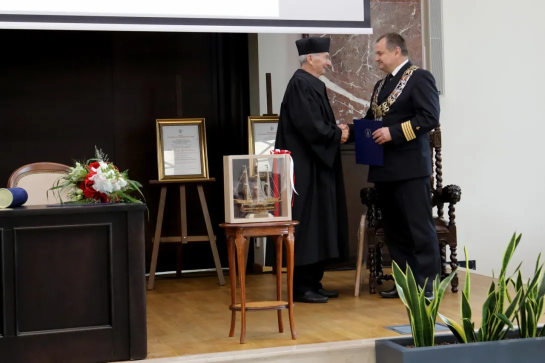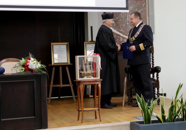 - Tytuł doctora honoris causa stanowi najwyższą godność akademicką nadawaną osobom wybitnym, szczególnie zasłużonym dla rozwoju nauki, kultury, gospodarki, szkolnictwa morskiego lub życia społecznego. To szczególne wyróżnienie otrzymują ludzie cieszący się niekwestionowanym autorytetem i postawą moralną. Osoby uhonorowane tytułem doctora honoris causa mają wolę i siłę sprawczą zmieniania otaczającego ich świata, sprawiania, że ów świat staje się lepszy, bogatszy, ciekawszy i bardziej wartościowy. Do grona tych osób z całą pewnością należy Pan Profesor dr inż. kpt. ż.w. Mirosław Jurdziński.