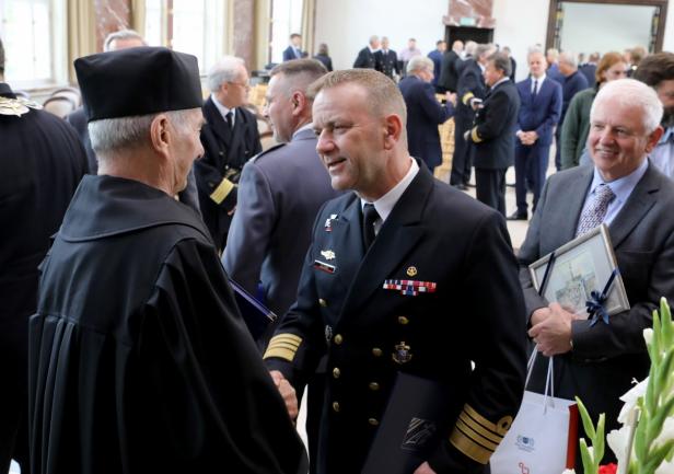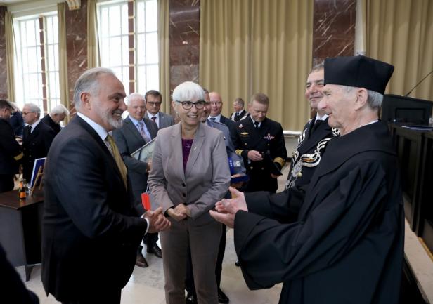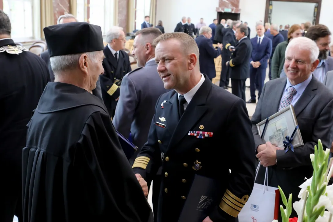 Głos zabrał również Rektor Akademii Morskiej w Szczecinie dr hab. inż. kpt. ż.w. Wojciech Ślączka, prof. AMS, który zaznaczył, że pierwsze kroki Profesor Mirosław Jurdziński stawiał w uczelni szczecińskiej, a następnie wręczył Profesorowi Jurdzińskiemu laudację oraz okolicznościowy obraz.