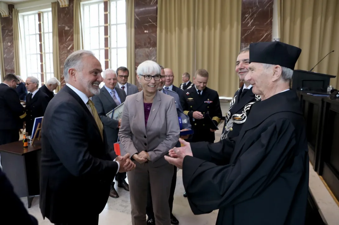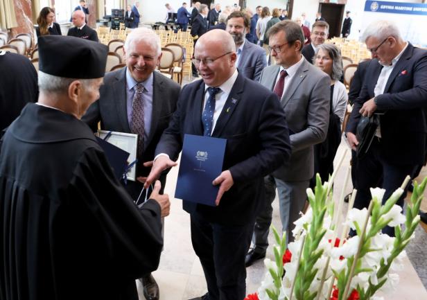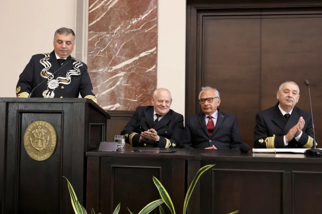 Wyrazy uznania Profesorowi Jurdzińskiemu złożył również absolwent Uczelni, minister Marek Gróbarczyk, który podziękował Profesorowi za inspirujący wykład, jak również za wkład wniesiony w rozwój szkolnictwa morskiego: