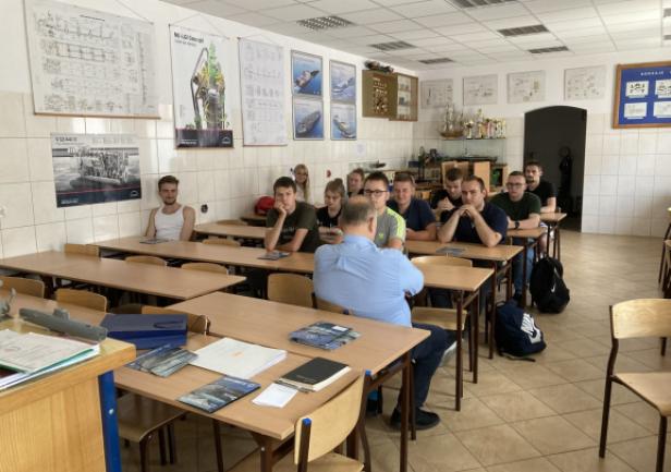 Po omówieniu z Dyrektorem szkoły Panem mgr Kazimierzem Toczko oraz nauczycielem przedmiotów zawodowych Panem mgr. inż. Pawłem Ciereszko wstępnego planu praktyk i warunków umowy, spotkano się również z uczniami, w celu krótkiego przedstawienia jednostki Horyzont II. Uczniowie chętnie zadawali pytania związane z ich praktykami morskimi, które rozpoczną się 15 września i potrwają 4 tygodnie. Horyzont II wraz z uczniami z ZSŻŚ wyruszy na otwarcie kanału żeglugowego przez Mierzeję Wiślaną, które zaplanowane jest na dzień 17 września.