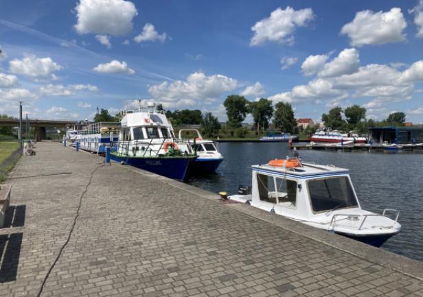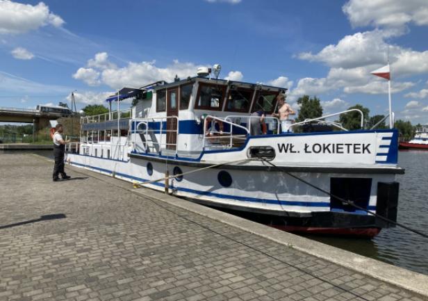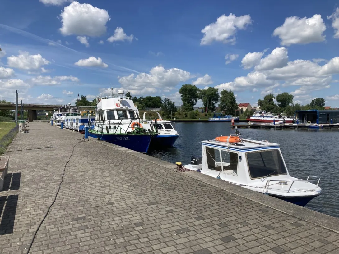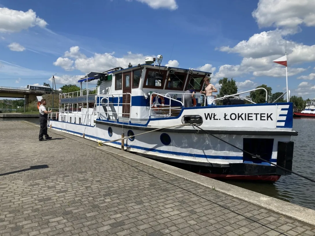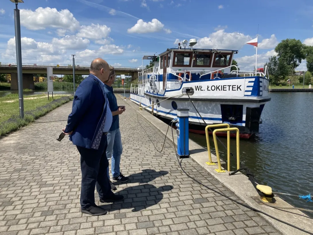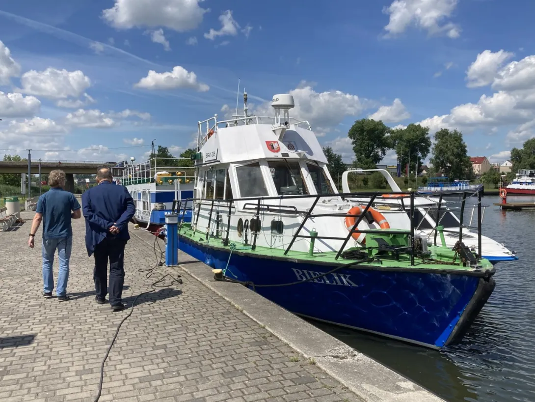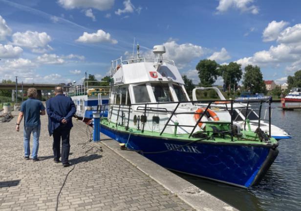 Na zakończenie wizyty w Nakle przedstawiciele UMG oraz ZSŻŚ wybrali się na przystań żeglarską, gdzie zaprezentowano jednostki żeglugi śródlądowej należące do Zespołu Szkół Żeglugi Śródlądowej.
