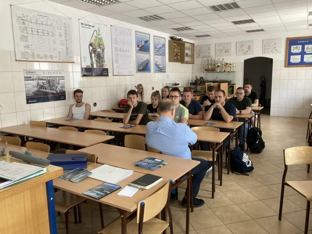 Spotkanie wiązało się z nawiązaniem współpracy szkoły z Uniwersytetem Morskim w Gdyni w zakresie odbycia praktyk na statku Horyzont II przez uczniów III kl. specjalności technik żeglugi śródlądowej. Po uzyskaniu dyplomu technika żeglugi śródlądowej i odbyciu 2-miesięcznej nadzorowanej praktyki na statku morskim w dziale maszynowym, uczniowie technikum uzyskują świadectwo motorzysty wachtowego.