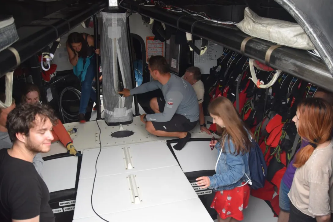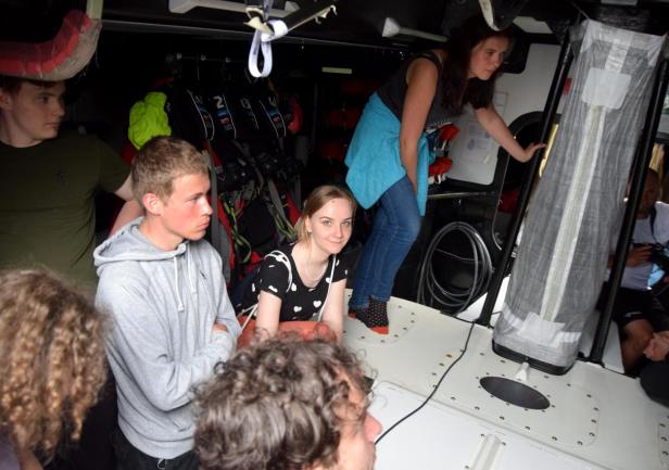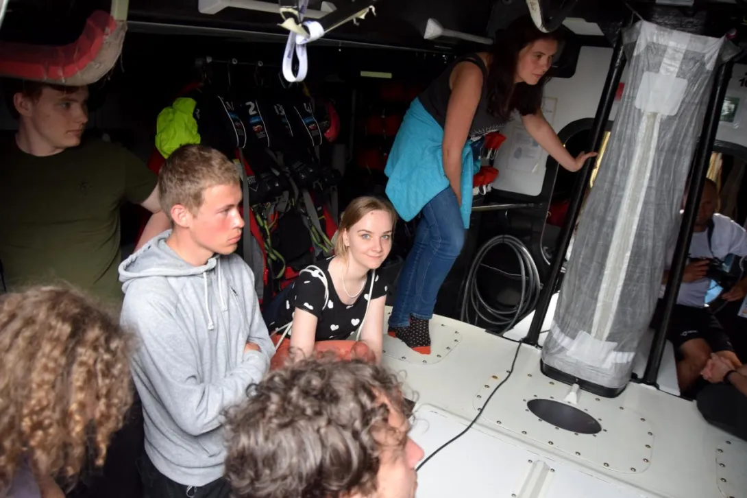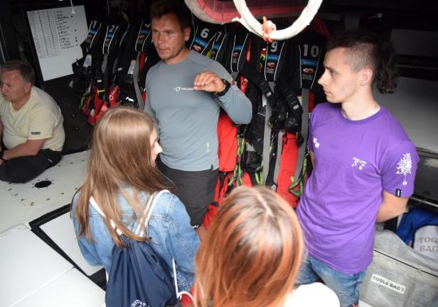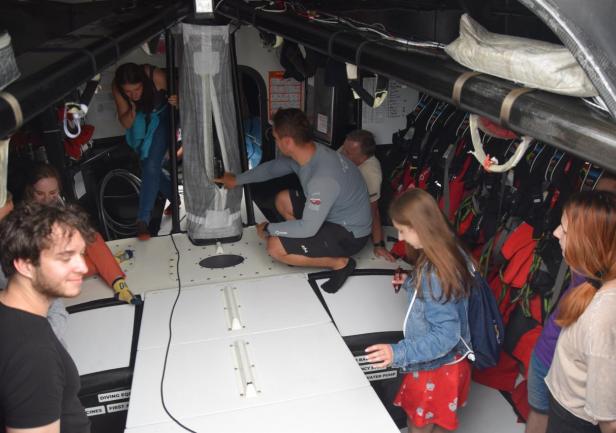 Jacht wzbudził wielkie zainteresowanie naszych studentów. Wszak to formuła 1 w żeglarstwie. Wystarczy wspomnieć, że rekordowy przelot dobowy, jaki zanotowano na "I Love Poland" to aż 605 mil morskich! Studenci mogli wszystkiego dotknąć i mogli zadać dowolne pytanie, a Bartosz Nowicki okazał się doskonałym przewodnikiem. Wywiązała się również ciekawa dyskusja dotycząca urządzeń nawigacyjnych oraz programów nawigacyjnych i pogodowych zainstalowanych na jachcie.