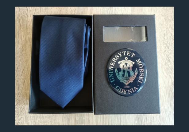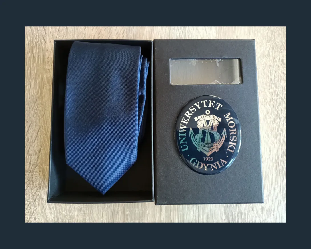 7. JEDWABNY, MORSKI KRAWAT Z LOGO UNIWERSYTETU MORSKIEGO W GDYNI