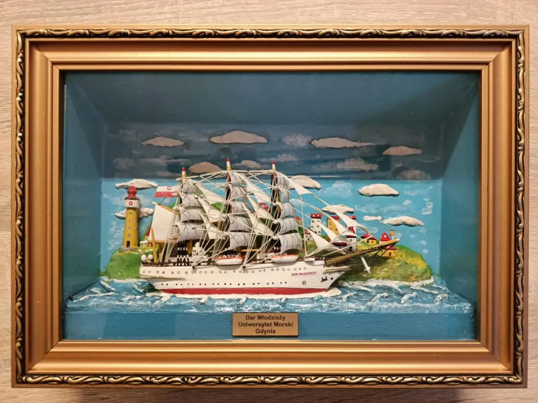 1. TRÓJWYMIAROWY MODEL S/V „DAR MŁODZIEŻY” W ZŁOTEJ RAMIE