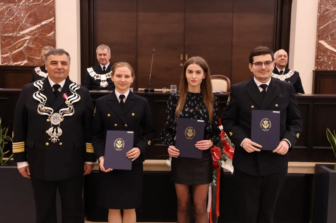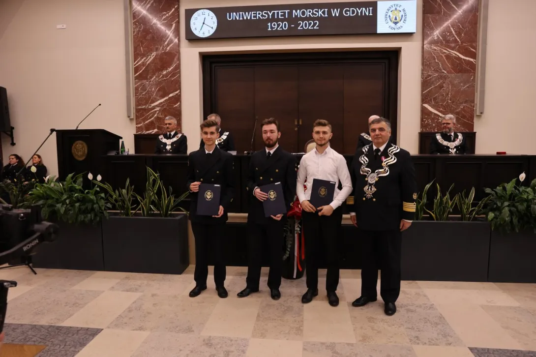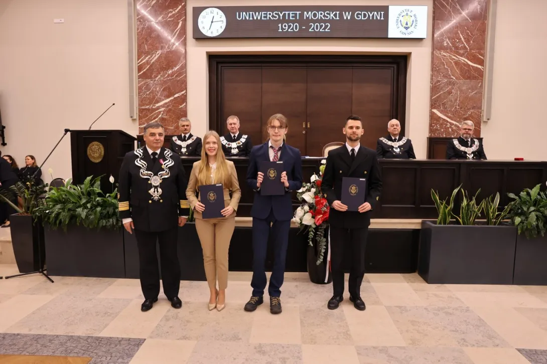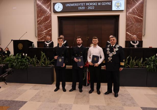 Następnie, Jego Magnificencja Rektor przyznał trzy "Medale Absolwenta Uniwersytetu Morskiego w Gdyni" z wpisem do "Złotej Księgi Absolwentów" za bardzo dobre wyniki w nauce oraz za wysoką ocenę z egzaminu dyplomowego.