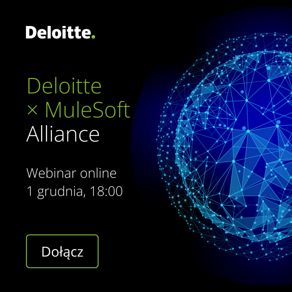 Webinar Deloitte x MuleSoft AllianceJuż 1 grudnia, podczas Deloitte x MuleSoft Alliance, webinaru organizowanego przez ekspertów #Deloitte i #MuleSoft, przekonacie się, dlaczego ta właśnie platforma to przyszłość integracji oraz technologii w biznesie.