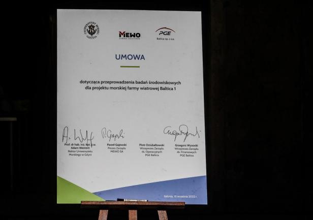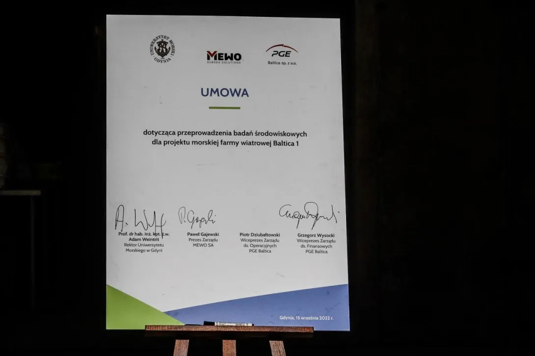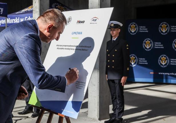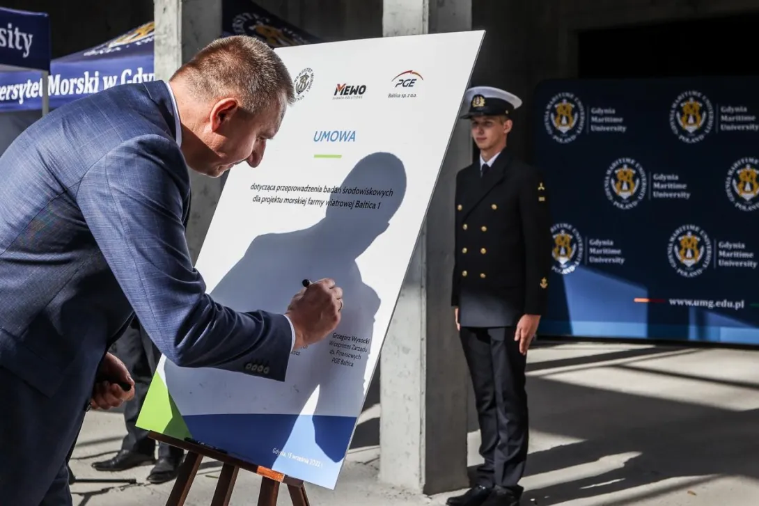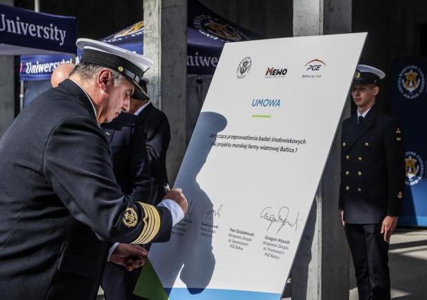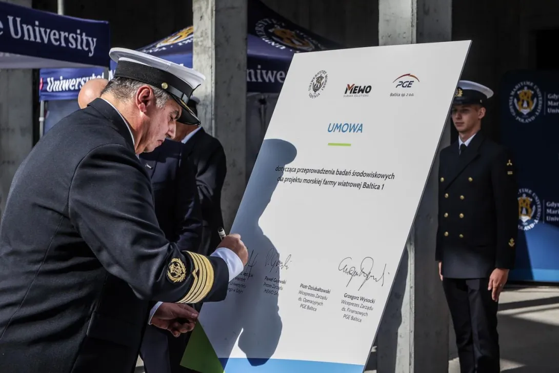 Podczas czwartkowego wydarzenia odbywającego się w sąsiedztwie Twierdzy Wisłoujście nastąpiło symboliczne podpisanie umowy pomiędzy Uniwersytetem Morskim w Gdyni, MEWO S.A. i PGE Baltica. Umowa dotyczy przeprowadzenia badań środowiskowych dla projektu morskiej farmy wiatrowej Baltica 1.