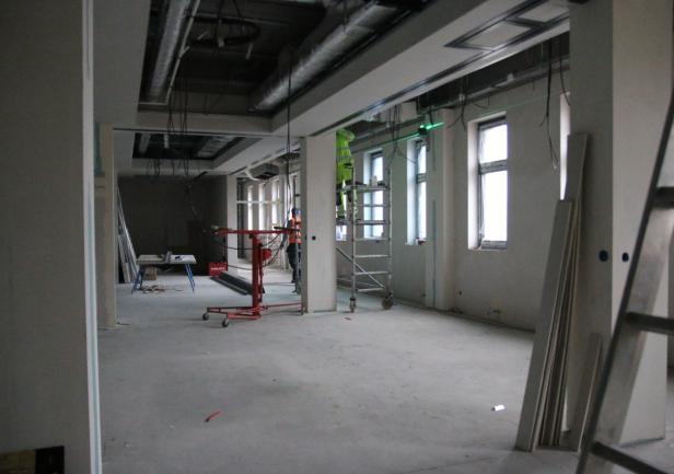 Ukończone zostały roboty związane z przyłączem do sieci ciepłowniczej i elektrycznej mówi Filip Malata, Kanclerz UMG. - Aktualnie budowa „weszła” w fazę robót wykończeniowych. Rozpoczęto szpachlowanie, malowanie i układanie płytek ściennych i posadzkowych, suchą zabudowę oraz montaż sufitu podwieszanego w pomieszczeniach i hali sportowej.