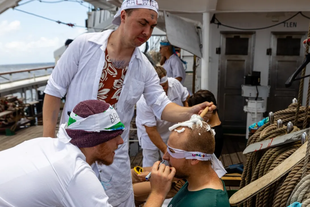 To jest taki duży krok naprzód, oni są już pełnoprawnymi marynarzami – podkreśla Aleksander Laszka – starszy mechanik na Darze Młodzieży. – To jest niepowtarzalna szansa przejść chrzest morski, aktualnie na statkach handlowych już się tego nie robi, po prostu nie ma na to czasu – dodaje Laszka.
