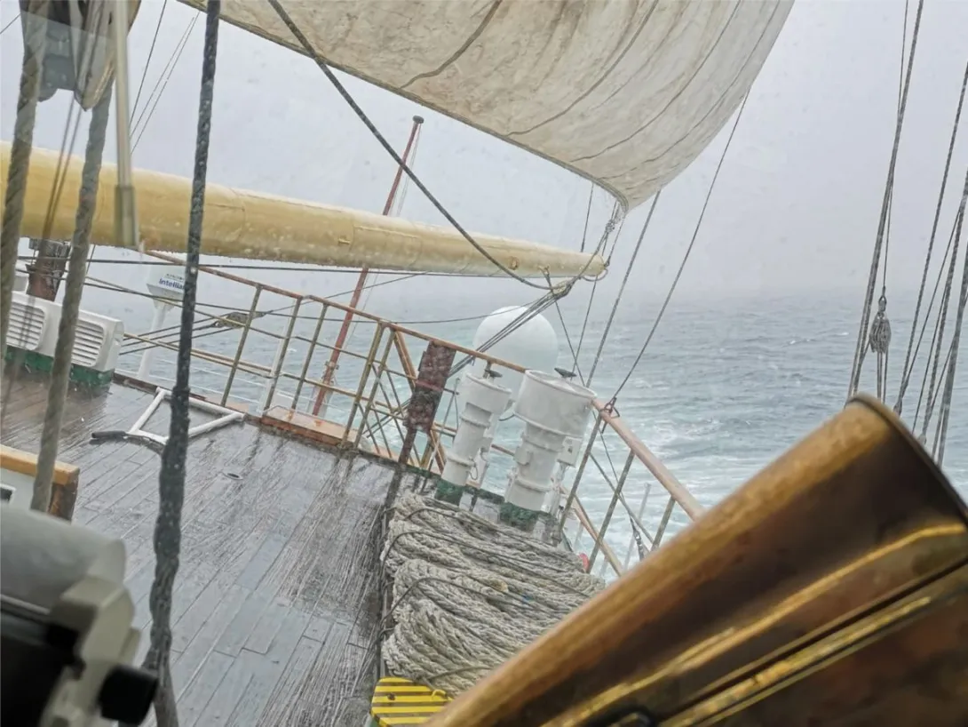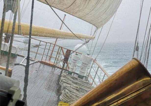 Na trasie panowały dobre warunki wiatrowe, a w ostatnich dwunastu godzinach prędkość wiatru przekraczała 20 węzłów, a momentami było to ponad 30 węzłów. Statek osiągał bardzo dobre prędkości, przez kilka godzin płynęliśmy 14 węzłami, a najwyższa zanotowana prędkość to 15,8 węzła – dodaje Komendant Szymański.