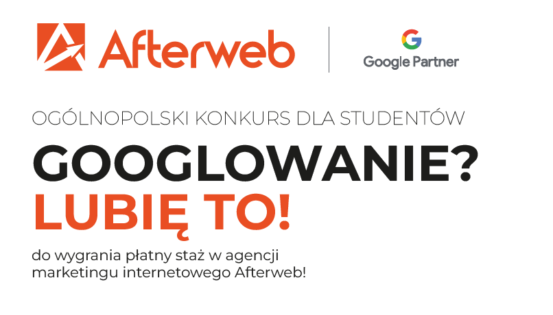Googlowanie? Lubię to!Zwycięzcy odbędą 3-miesięczny, płatny staż w agencji marketingu internetowego Afterweb (do wyboru stacjonarny lub zdalny). Doświadczenie będzie można zdobyć na stanowisku Copywriter SEO, Junior SEO lub Junior Google Ads Specjalist. Najlepsi stażyści otrzymają szansę na stałe zatrudnienie.