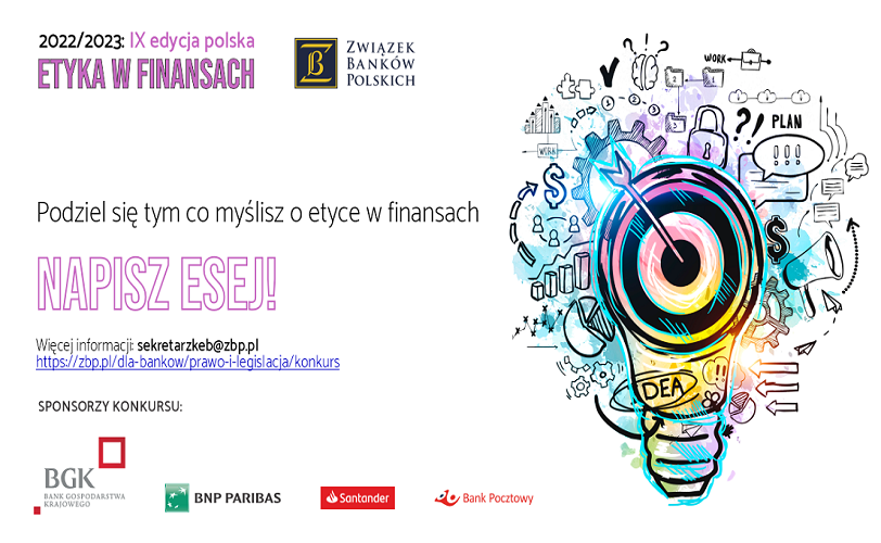 W imieniu Komisji Etyki Bankowej, działającej przy Związku Banków Polskich, zapraszamy do udziału w Konkursie „Etyka w finansach”.