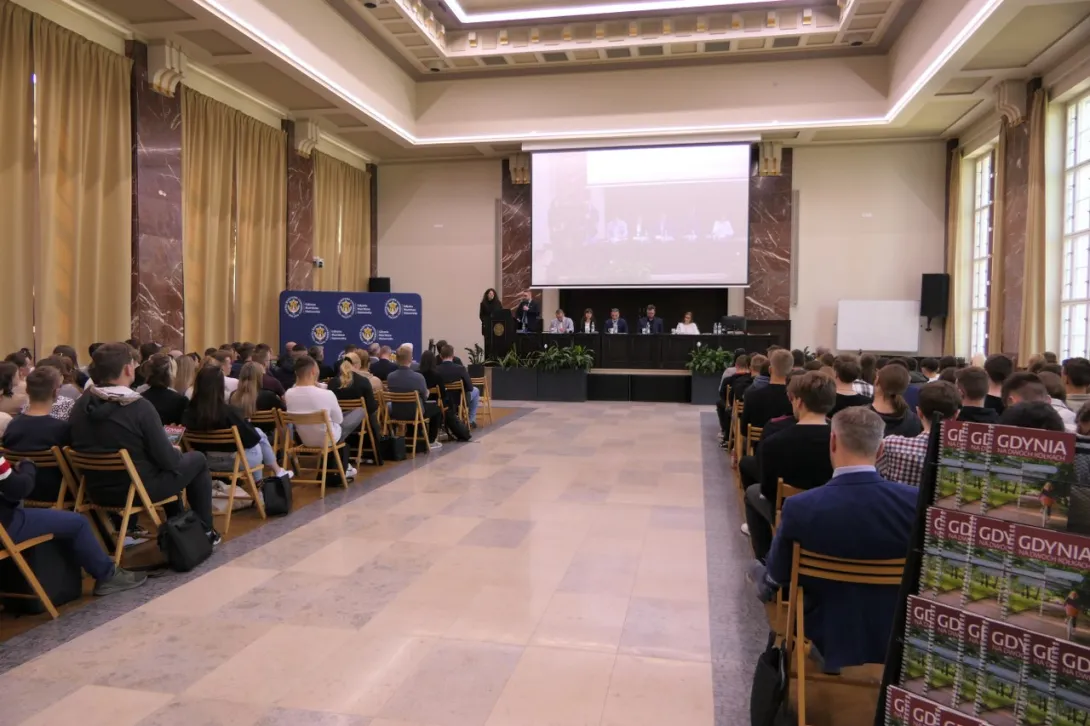 W Auli im. T. Meissnera zgromadziło się ponad 140 studentów UMG oraz WSAiB, którzy zostali zapoznani z opracowywanym aktualnie przez Gminę dokumentem Strategii Rowerowej dla Gdyni na lata 2023-2030. Debatę oficjalnie otworzyli JM Rektor prof. dr hab. inż. kpt. ż.w. Adam Weintrit oraz Wiceprezydent Gdyni ds. rozwoju Marek Łucyk. Natomiast moderatorami spotkania byli dr hab. Adam Przybyłowski, prof. UMG oraz Justyna Suchanek z Referatu Zrównoważonej Mobilności Wydziału Inwestycji Urzędu Miasta Gdyni.