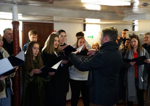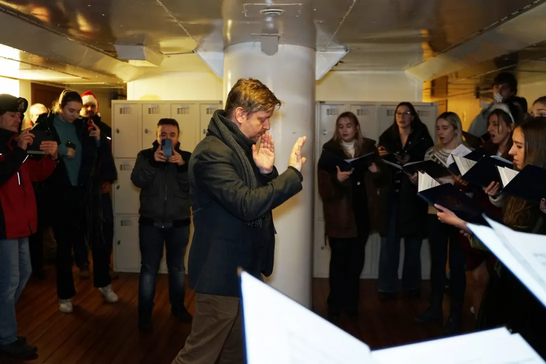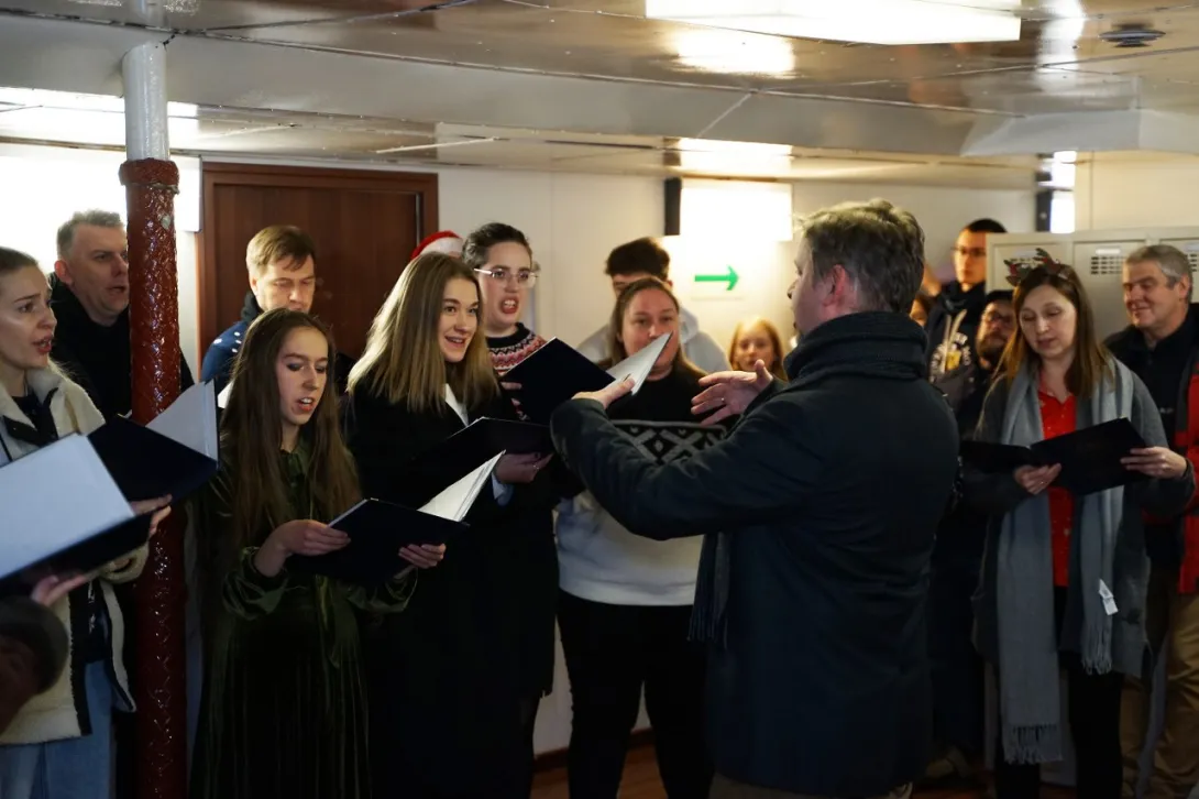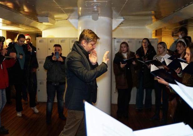 Odwiedzający „Dar Młodzieży” mieli okazję posłuchać również świątecznego repertuaru w wykonaniu Akademickiego Chóru Uniwersytetu Morskiego pod dyrekcją dr. Karola Hilli.