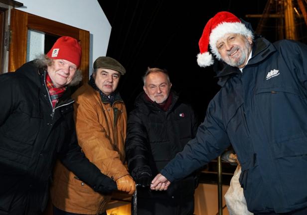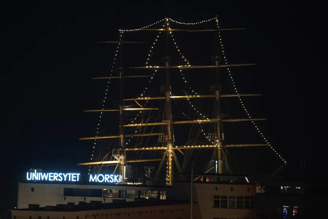 Choinka na „Darze Młodzieży” już świeci. W niedzielę, 10 grudnia 2023 roku, świetlną girlandę w kształcie choinki na grotmaszcie szkolnej fregaty Uniwersytetu Morskiego w Gdyni zapalili wspólnie JM Rektor UMG prof. dr hab. inż. kpt. ż.w. Adam Weintrit, prezydent Gdyni dr Wojciech Szczurek, komendant „Daru Młodzieży” kpt. ż. w. Rafał Szymański oraz dyrektor Działu Armatorskiego i Praktyk Morskich UMG mgr inż. kpt. ż.w. Dariusz Jellonnek